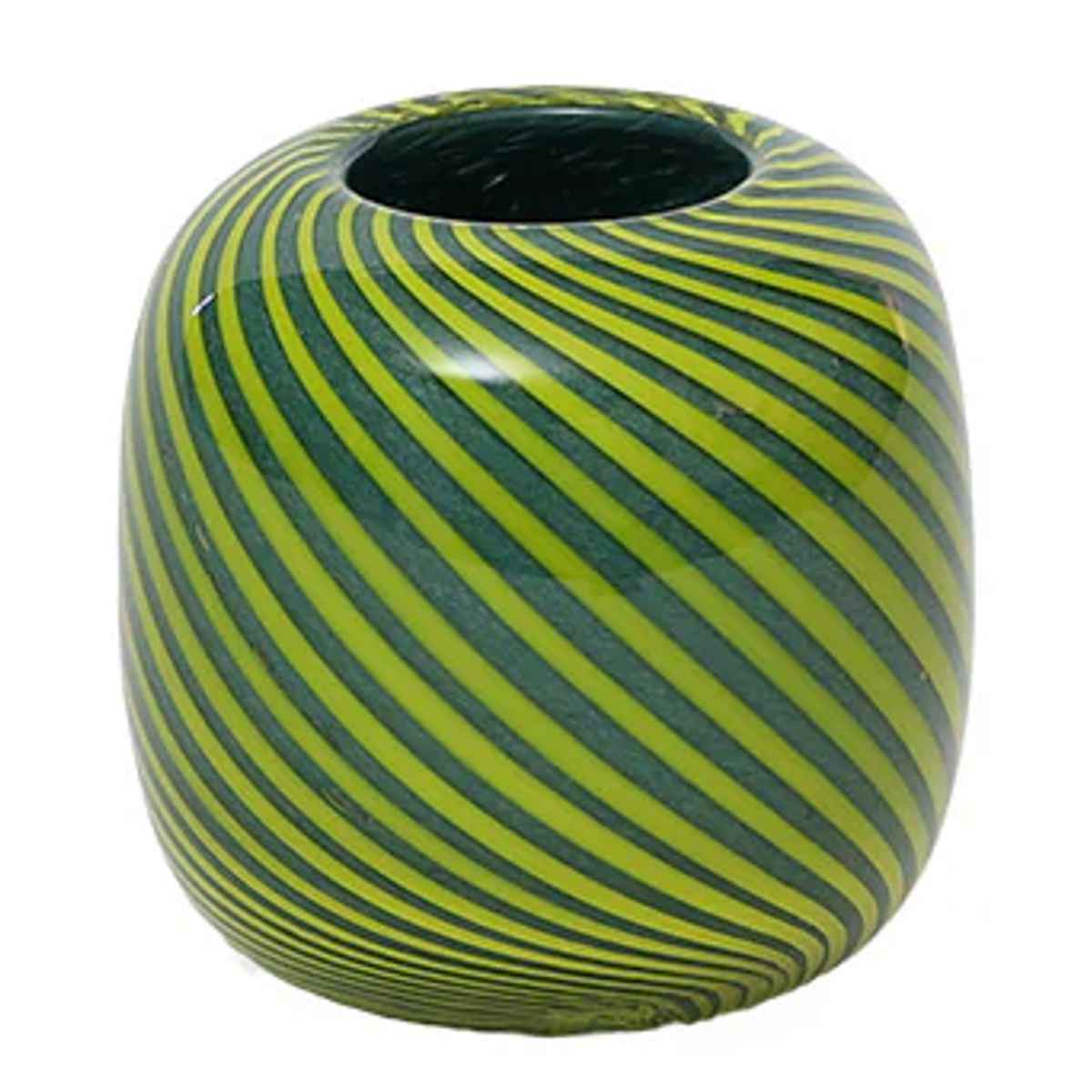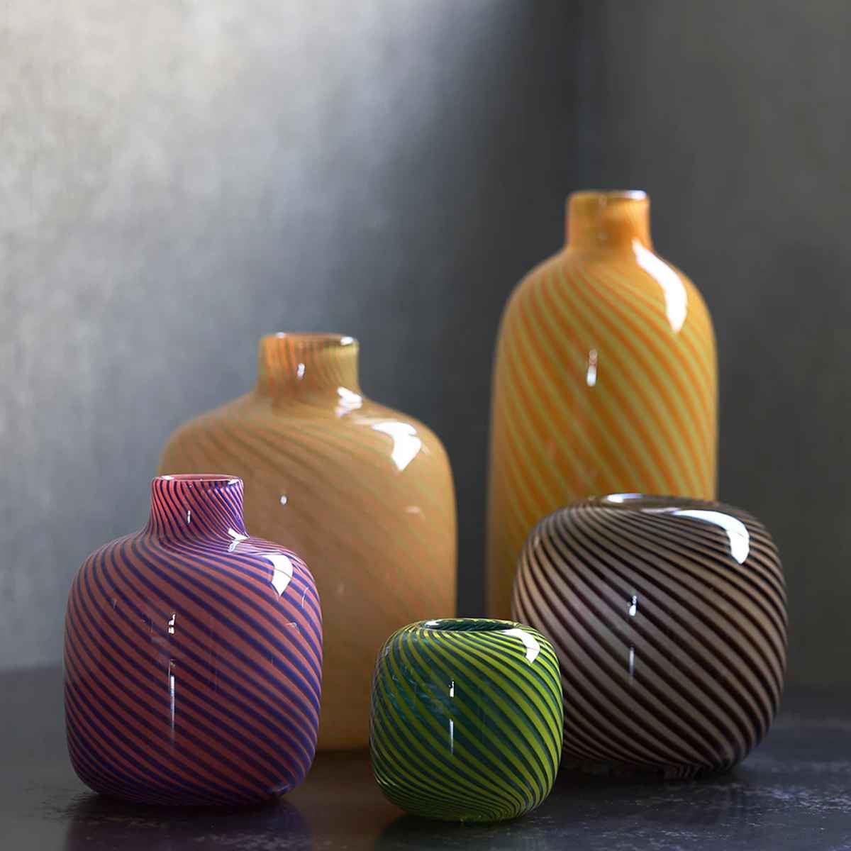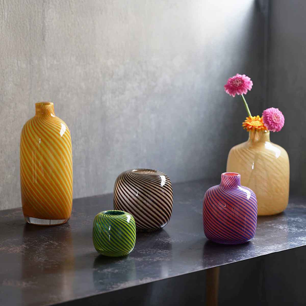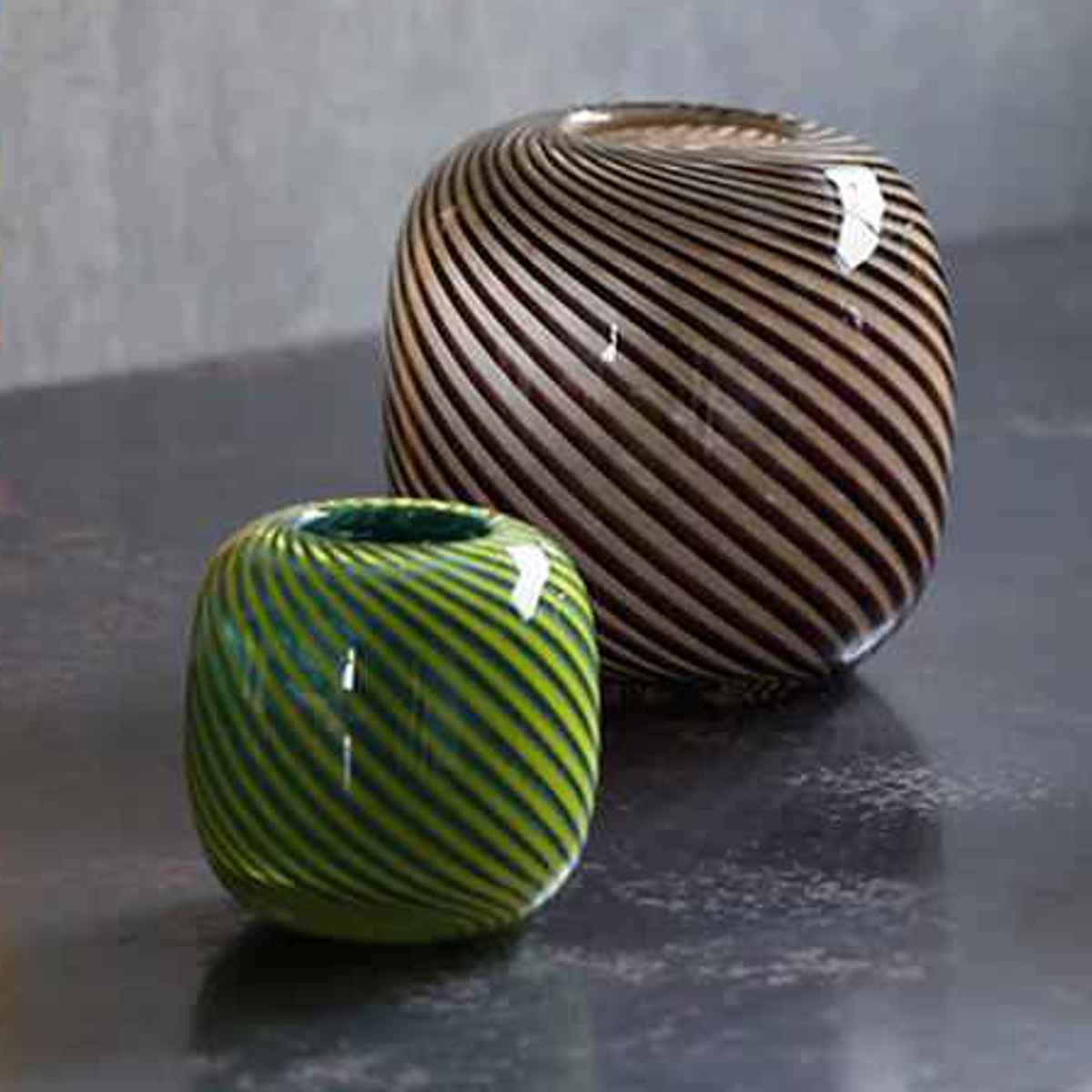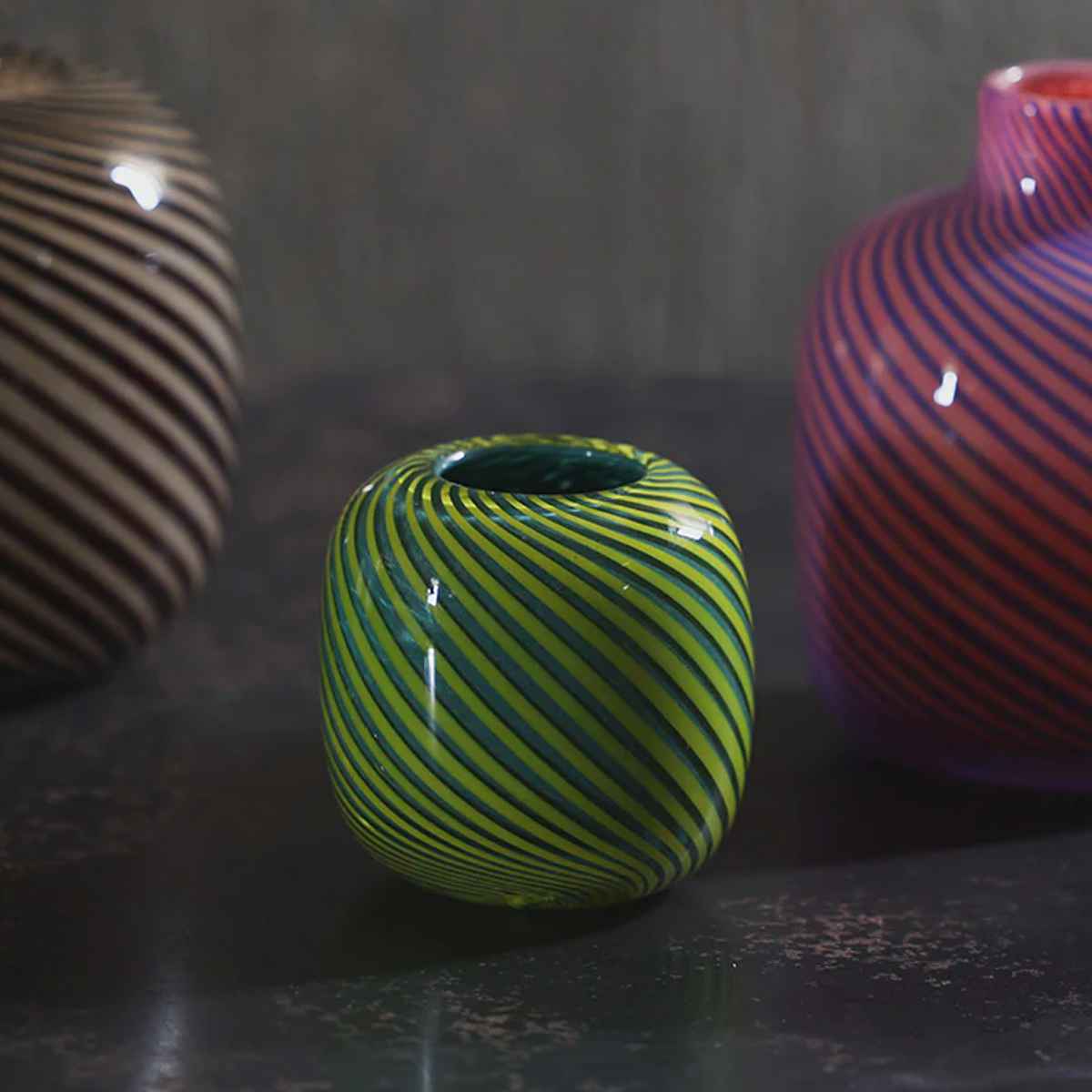 ●洗練されたストライプ模様と重厚感あふれる分厚いガラスのフラワーベース バッハです。