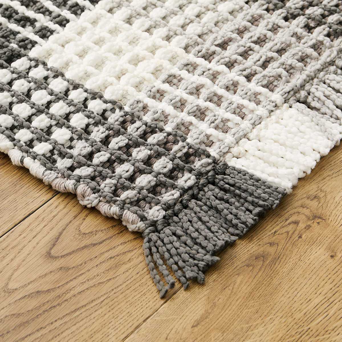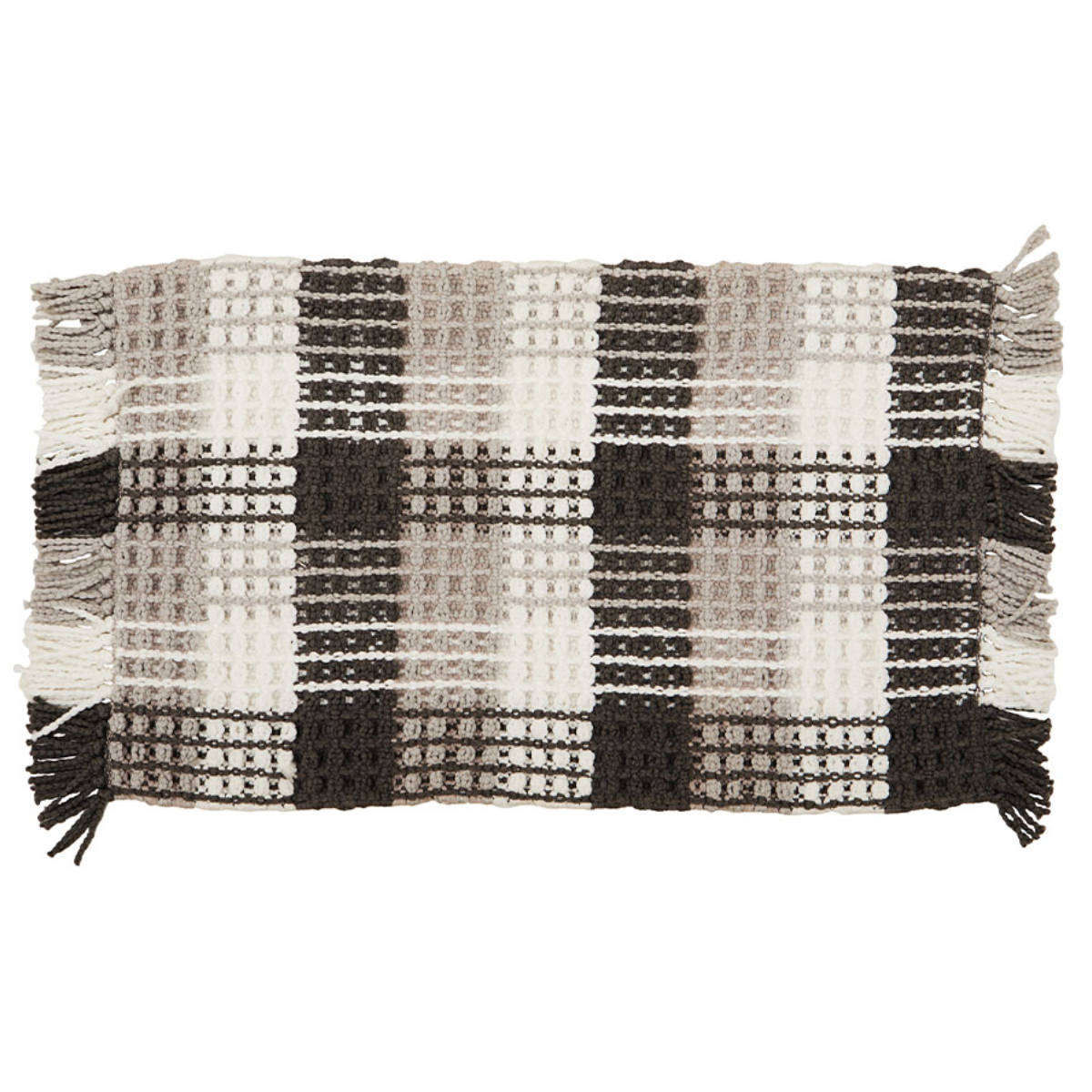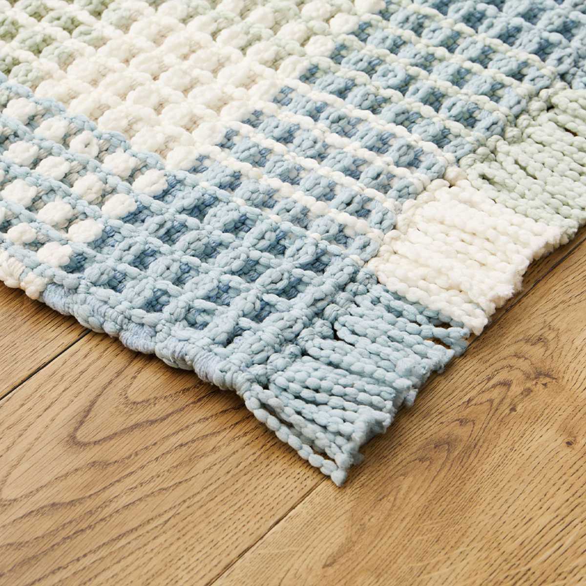 やわらかい糸を立体的に織り込んだワッフル風の玄関マット。さわやかなギンガムチェックのデザインで、おしゃれな雰囲気を演出してくれます。