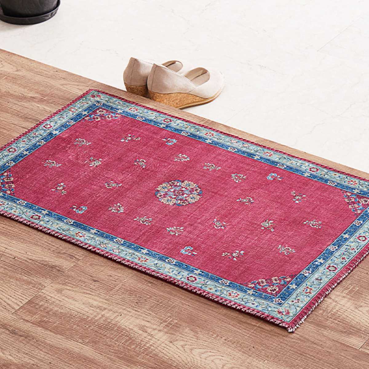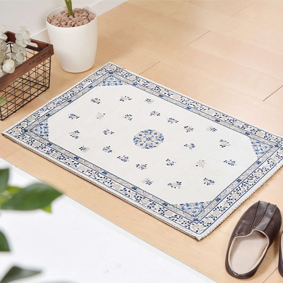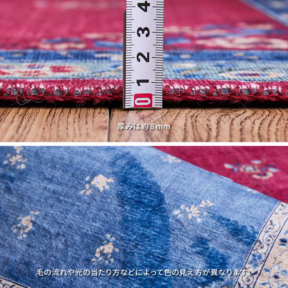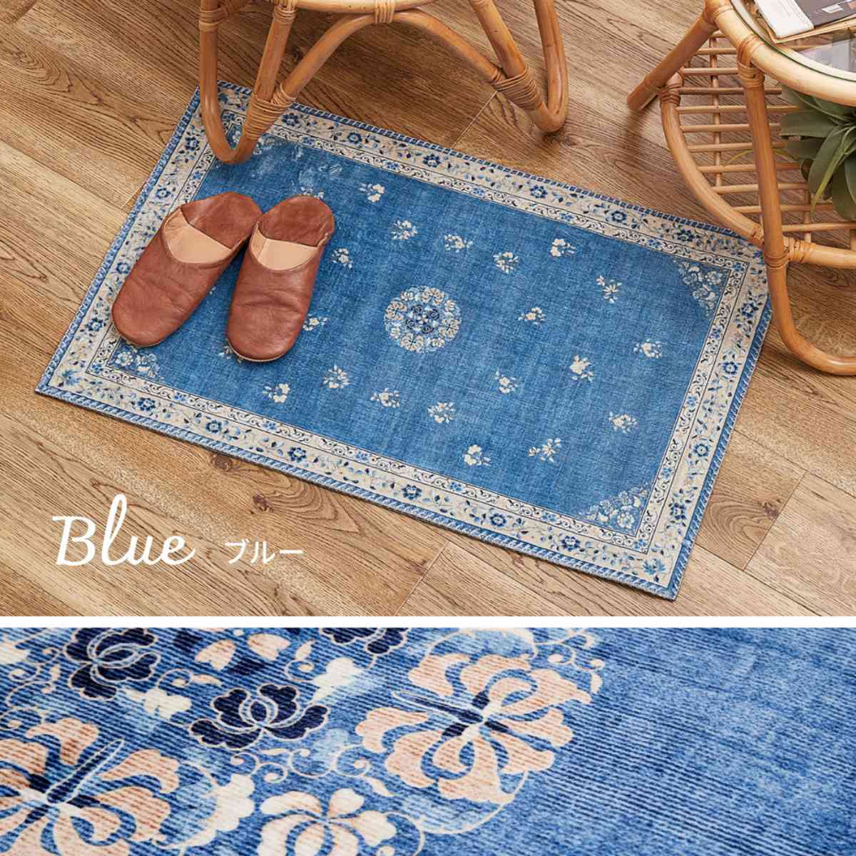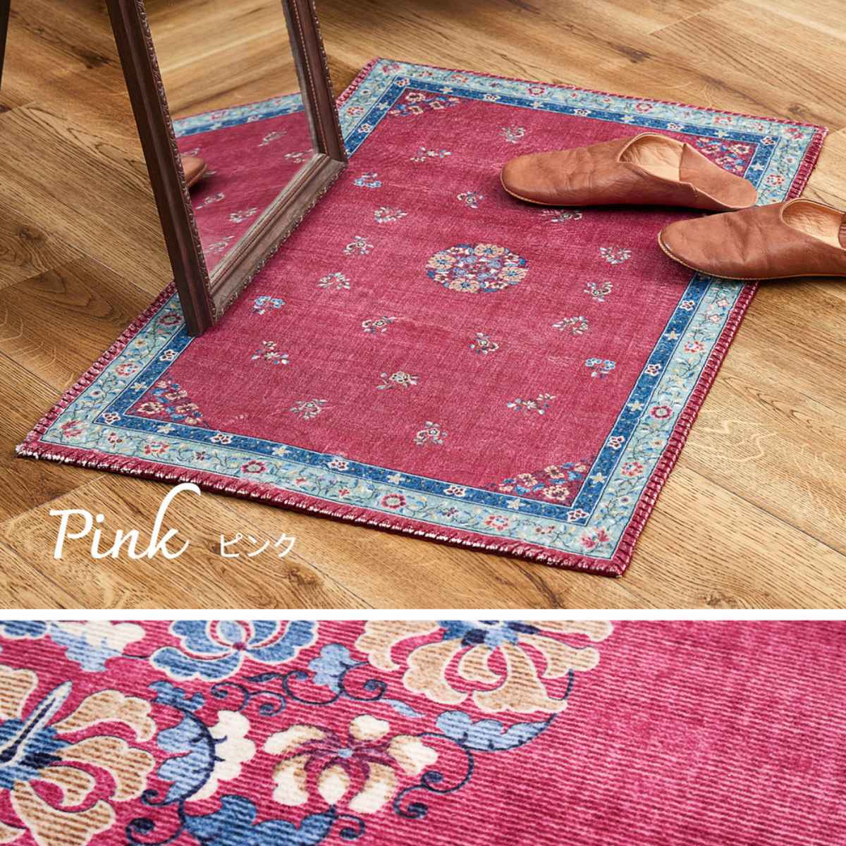 フェミニンな花柄でありながら、どこか東洋を感じさせる転写プリントラグが玄関をエレガントに彩ります。シンプルなお部屋はもちろん、和の空間にも馴染む優美な存在感が魅力的です。