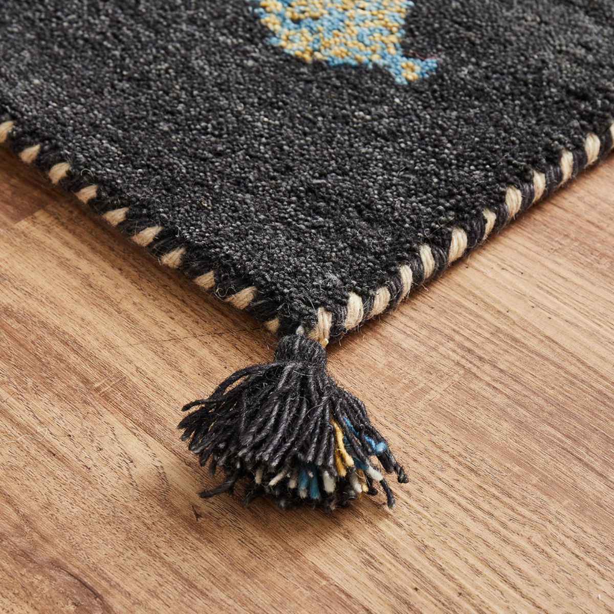 四隅に付いたタッセルがさりげない可愛らしさをプラスしてくれます。