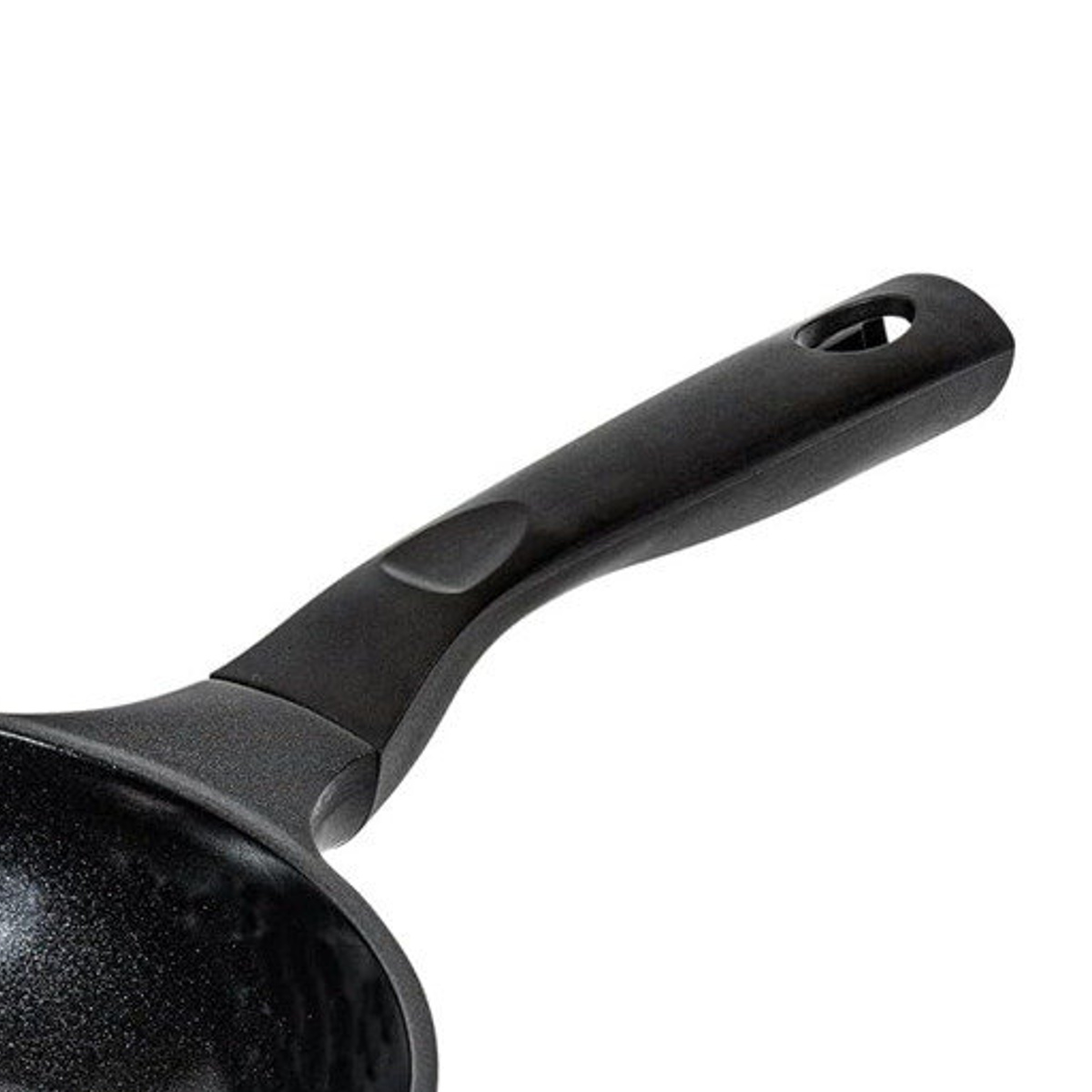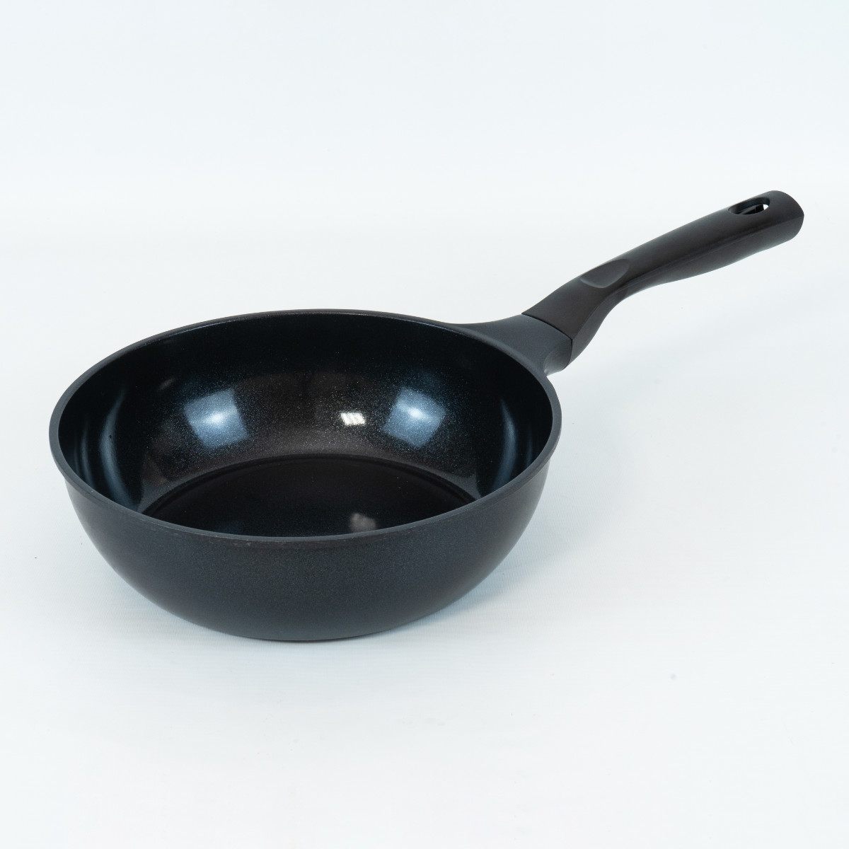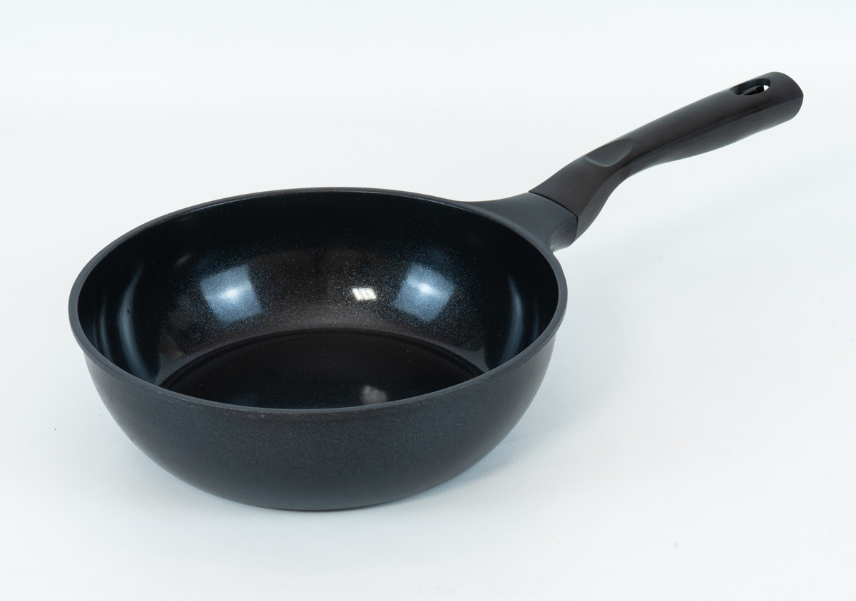 内面・外面ともに、セラミック加工が施されています。PFOA・PFOS不使用で、人にも環境にも優しく、安心してお使いいただけます。汚れが目立ちにくいブラックカラーで、キッチンになじむ落ち着いた印象です。