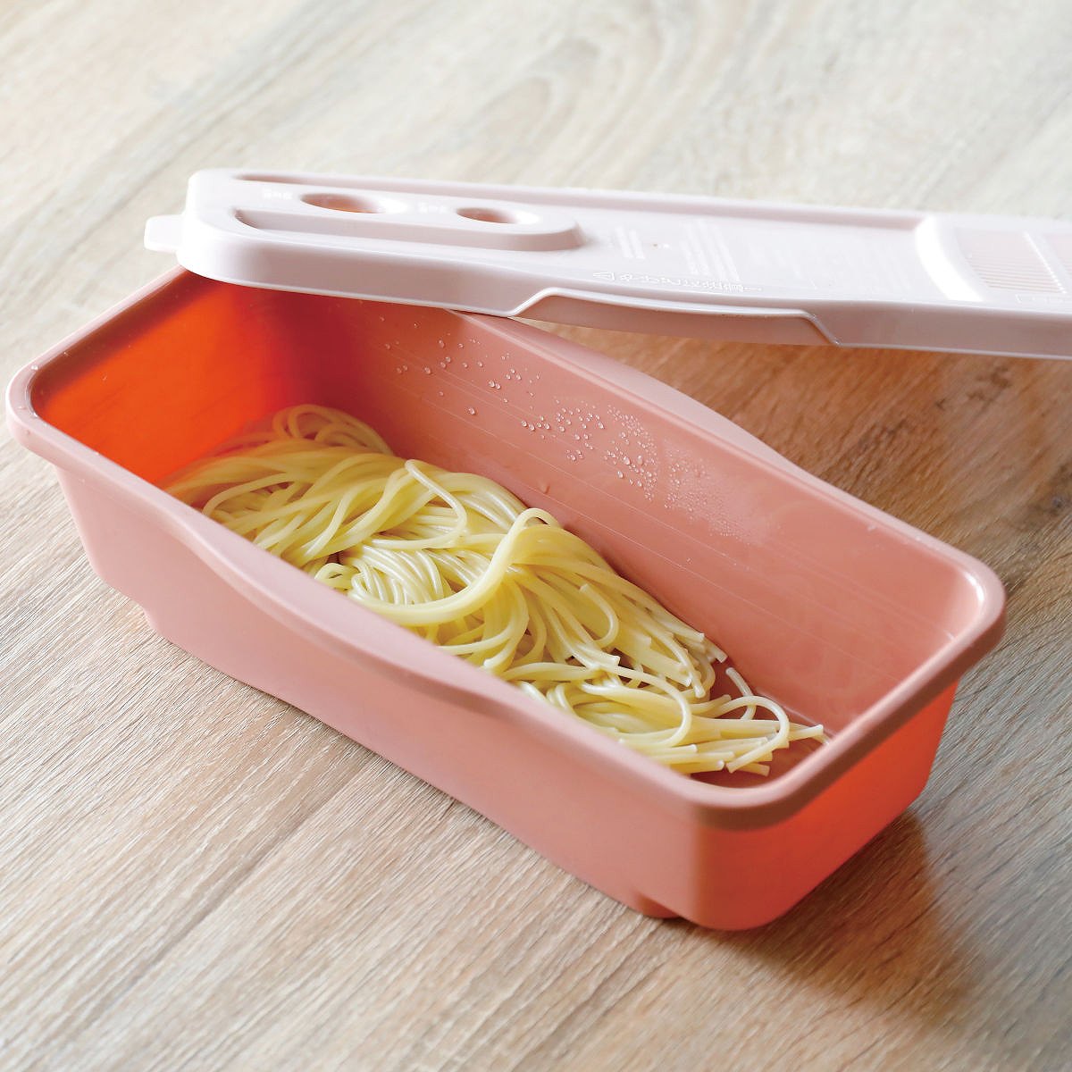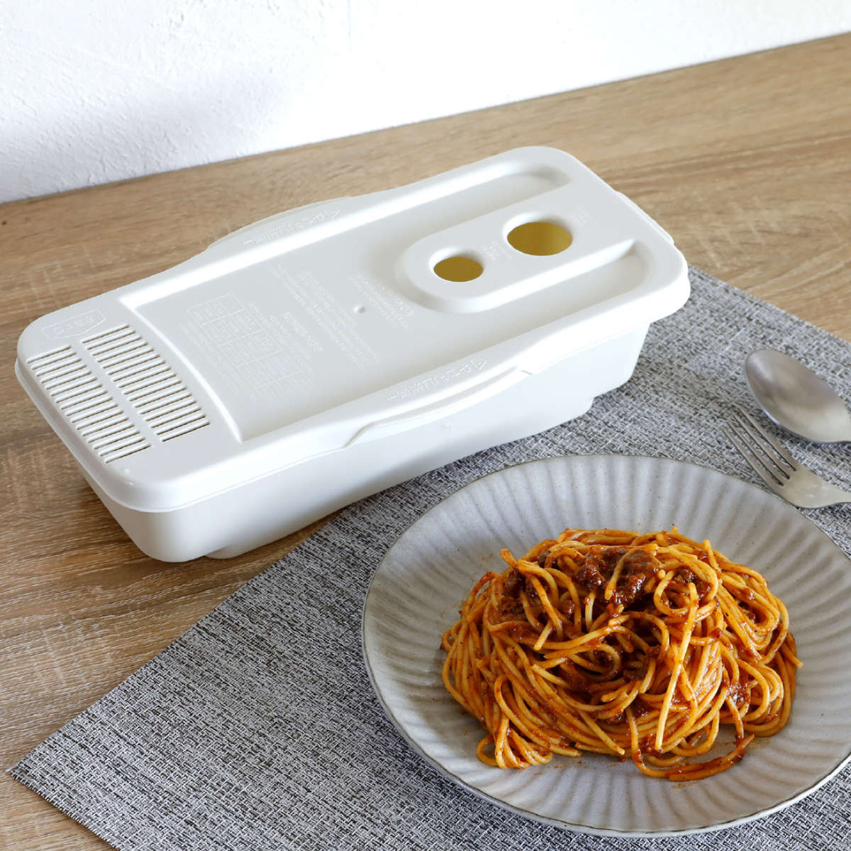 レンジでパスタが作れる調理ポットです。水と乾燥麺を入れてレンジでチンするだけで、お鍋を使わず手軽にパスタが作れます。バタバタしている時や火を使いたくない時に活躍する、お助けアイテム。職場などでランチにパスタを食べたい方にもおすすめです。
