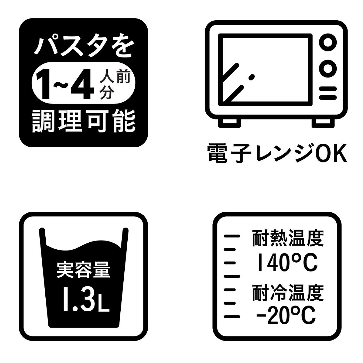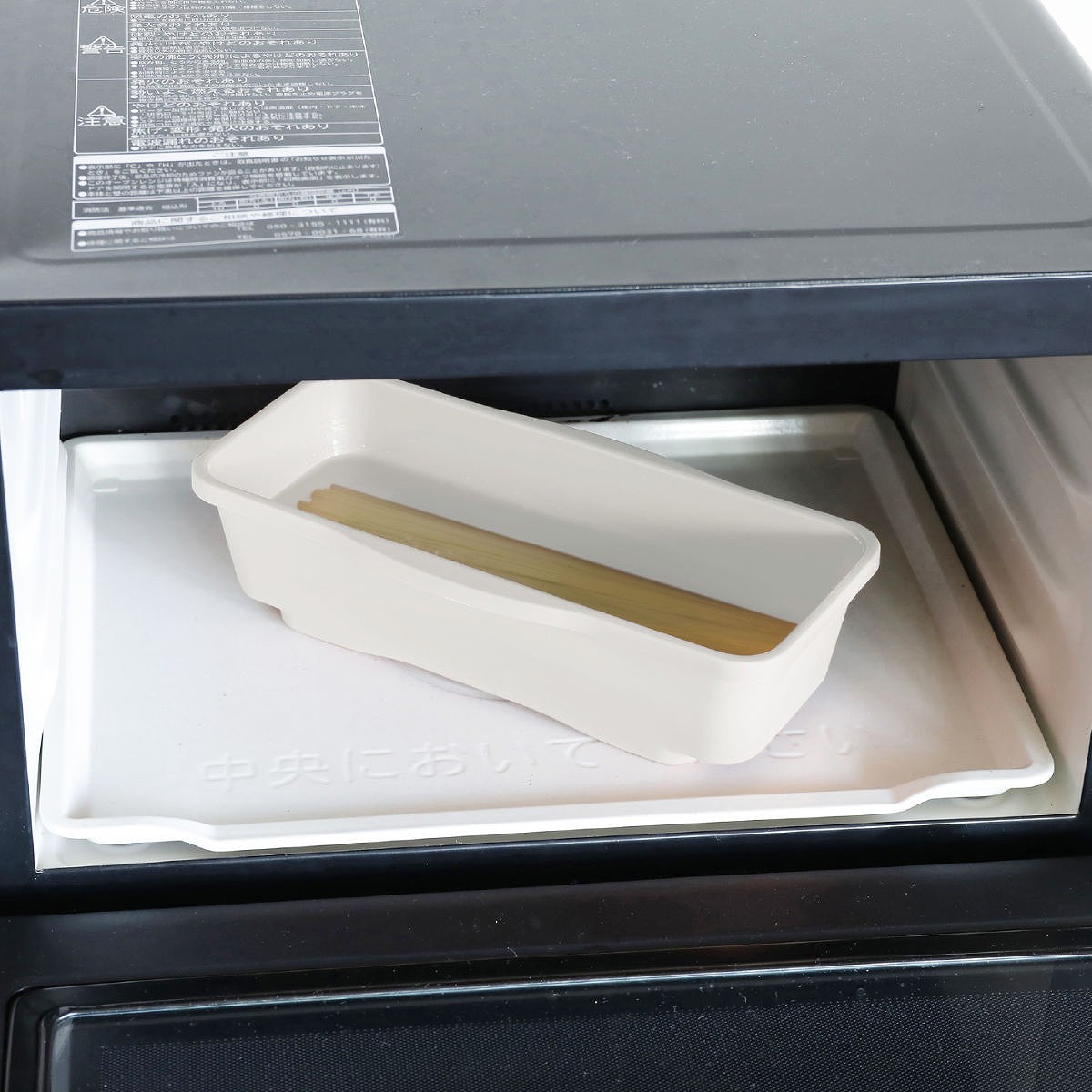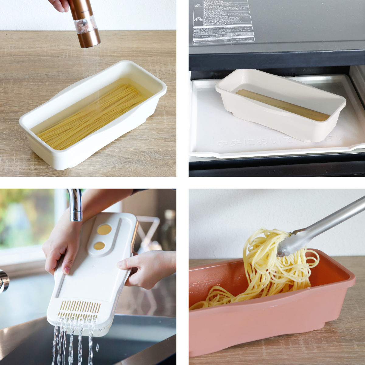 ●水と乾燥麺を入れてレンジでチンするだけで、お鍋を使わず手軽にパスタが作れます。
