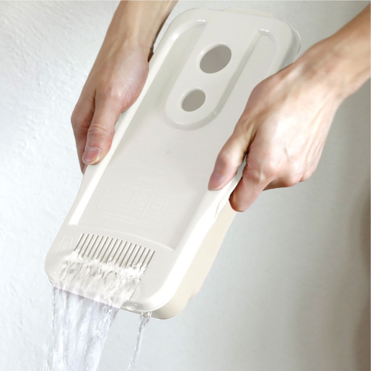 ●両サイドに持ち手がついているので、しっかり持って安心して湯切りできます。