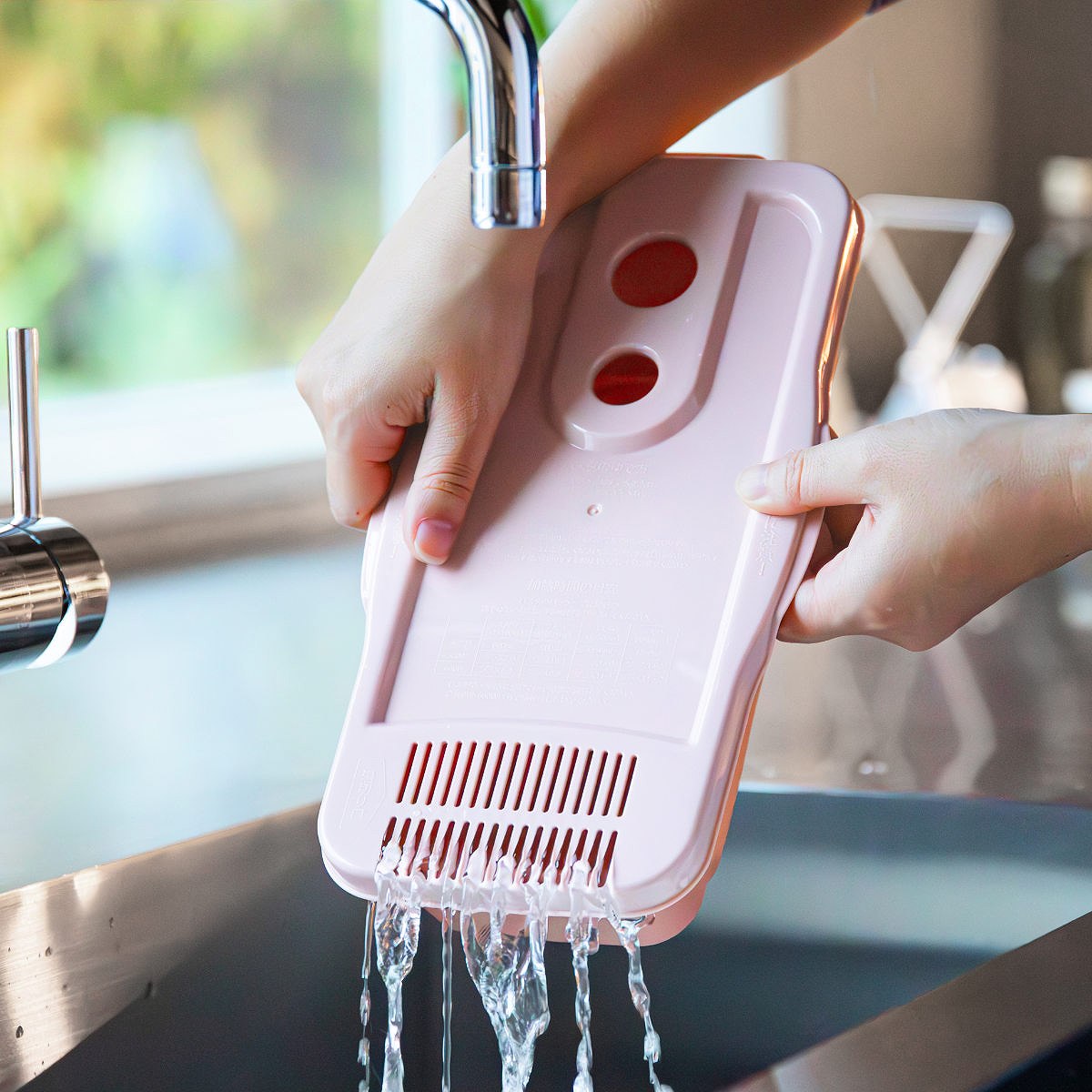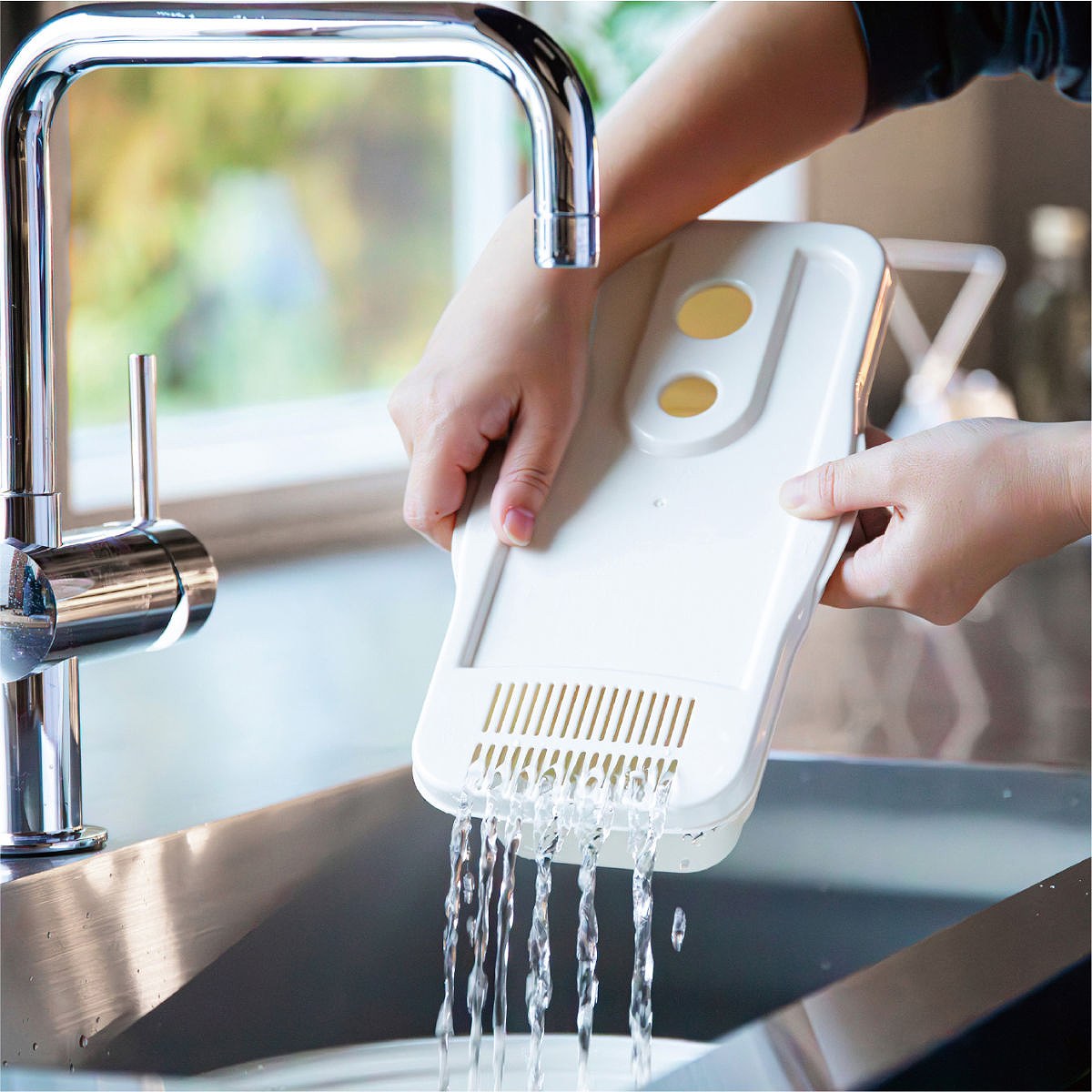両サイドに持ち手がついているので、しっかり持って安心して湯切りできます。
