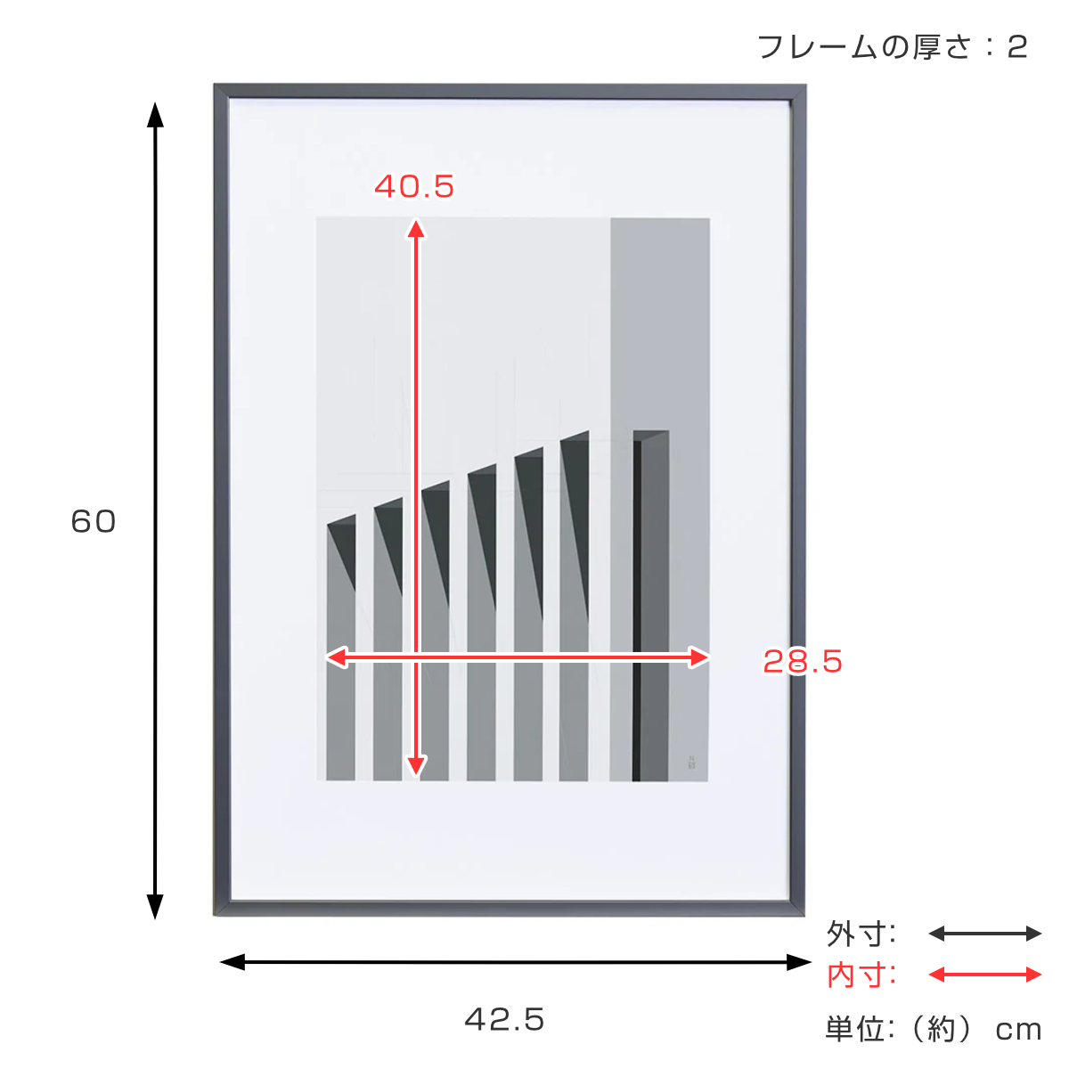 | サイズ | 約 幅42.5×高さ60(cm) 厚さ:約 2(cm) ラベルサイズ:A2 マット内枠 約28.5×40.5(cm) |