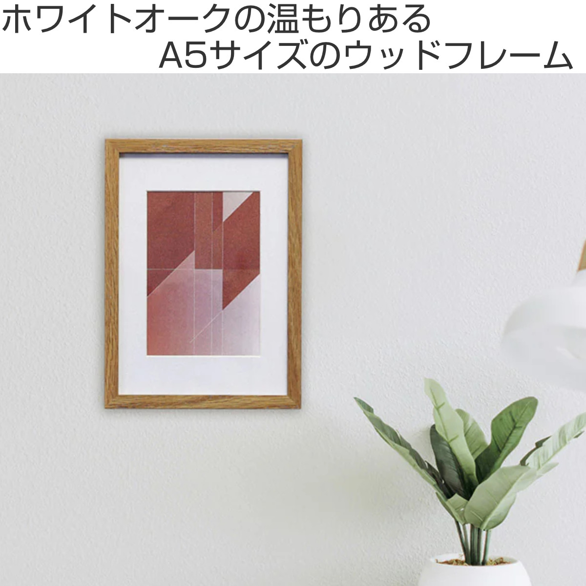 ホワイトオーク材にオイル加工を施した温もりあるウッドフレームA5サイズです。シーンに合わせて設置方法は卓上・壁掛両用で使用できます。