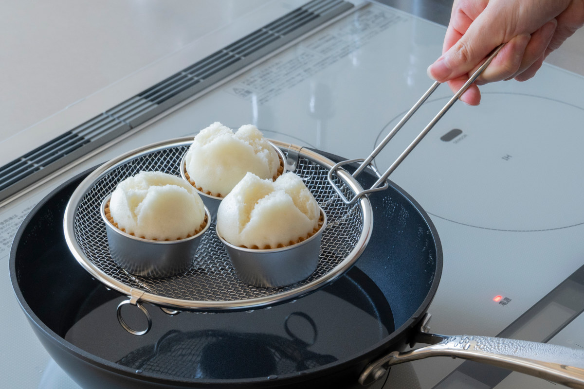 持ち上げ用のフックが付属しているので、熱くなった盆ざるも安心して取り出せます。食材を移す際も、手を汚さずにざるごと移動できるので便利です。