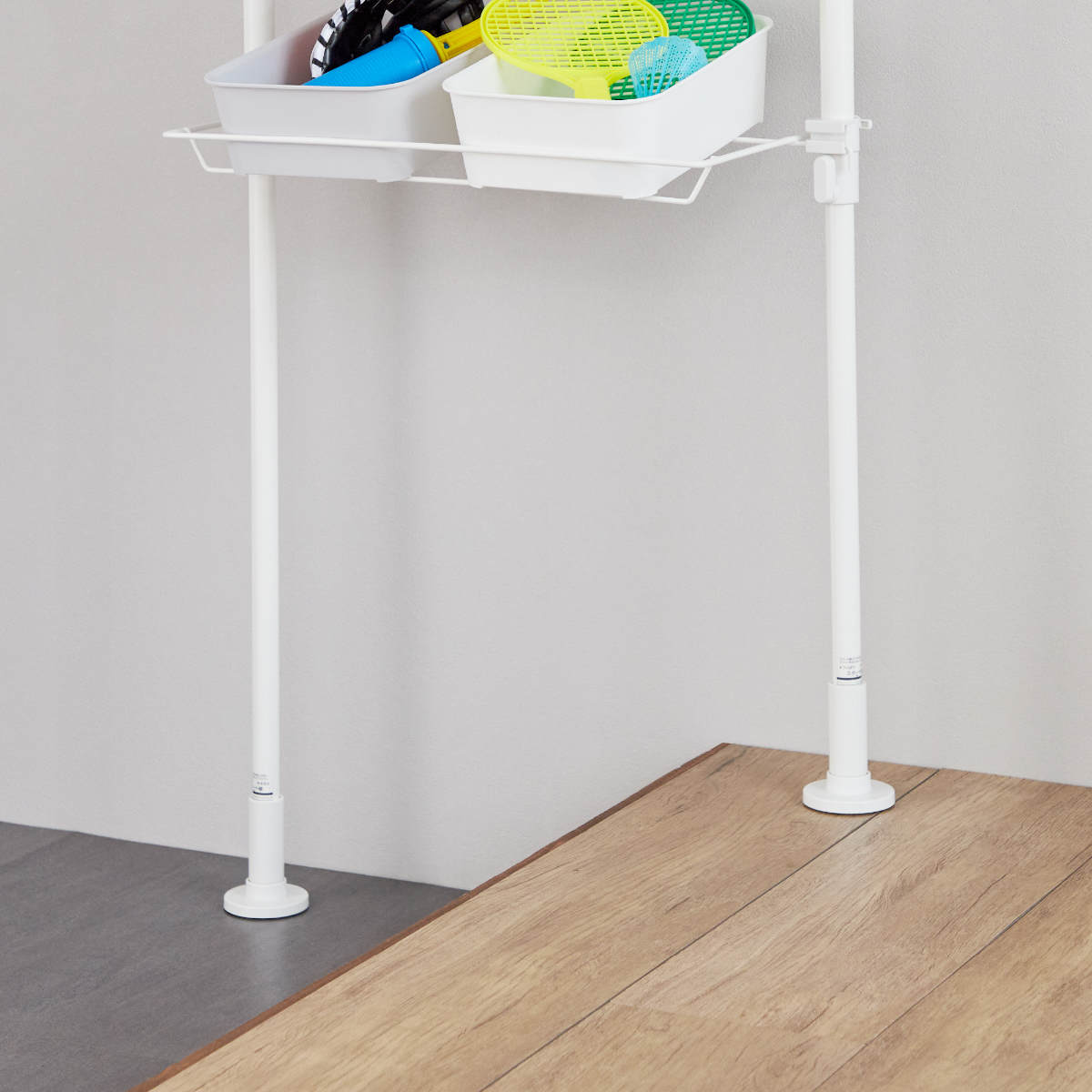 工事不要で設置できる安定感のある突っ張り式。床と天井にしっかり突っ張って固定することで、転倒防止対策はばっちりです。左右のポールそれぞれ独立して突っ張るので、床の段差や天井の梁があっても設置が可能です。