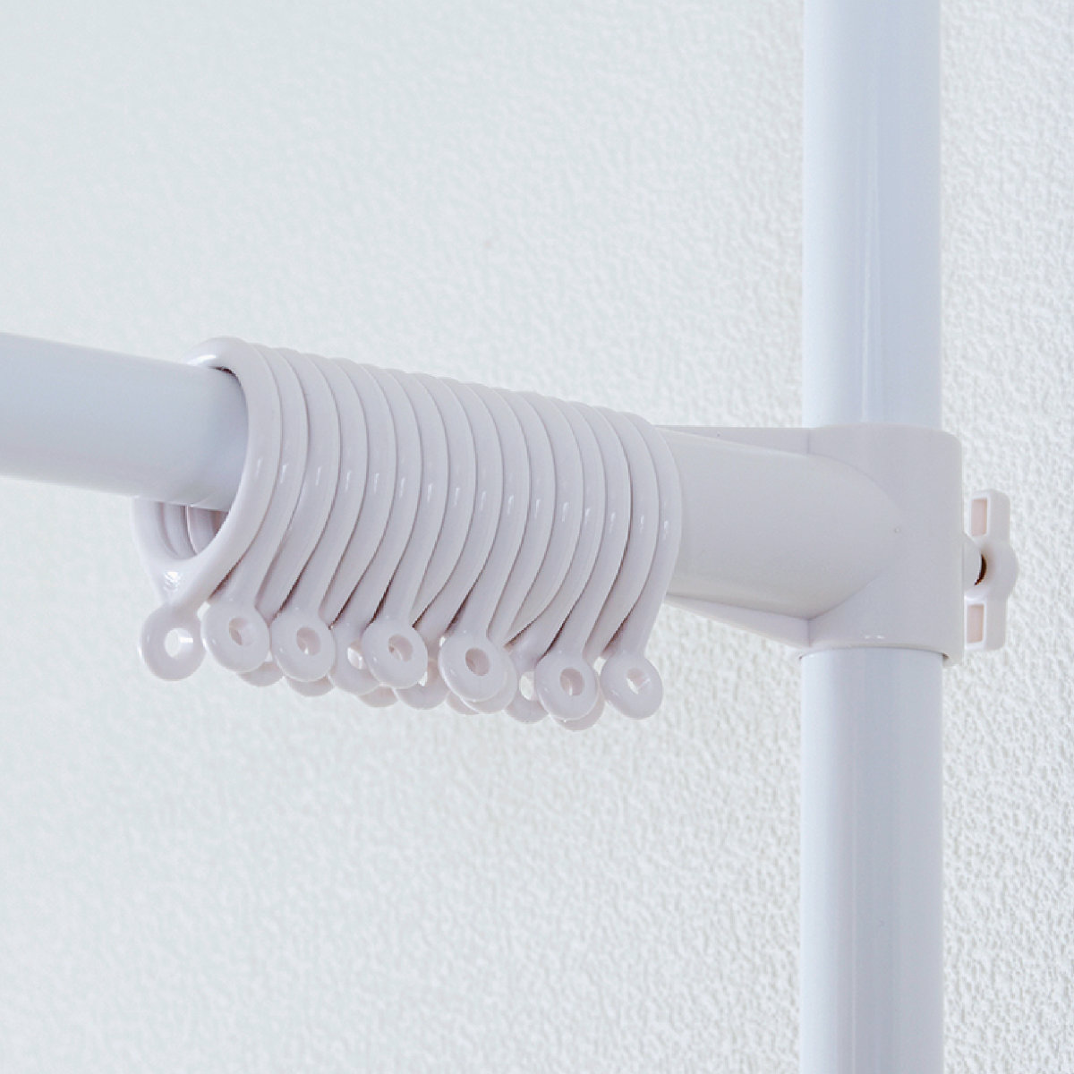 取り付けが簡単なカーテンリングが16個付属しています。最長290cmまでのカーテンに対応しているので、お好みのデザインのカーテンを取り付けてコーディネートをお楽しみいただけます。