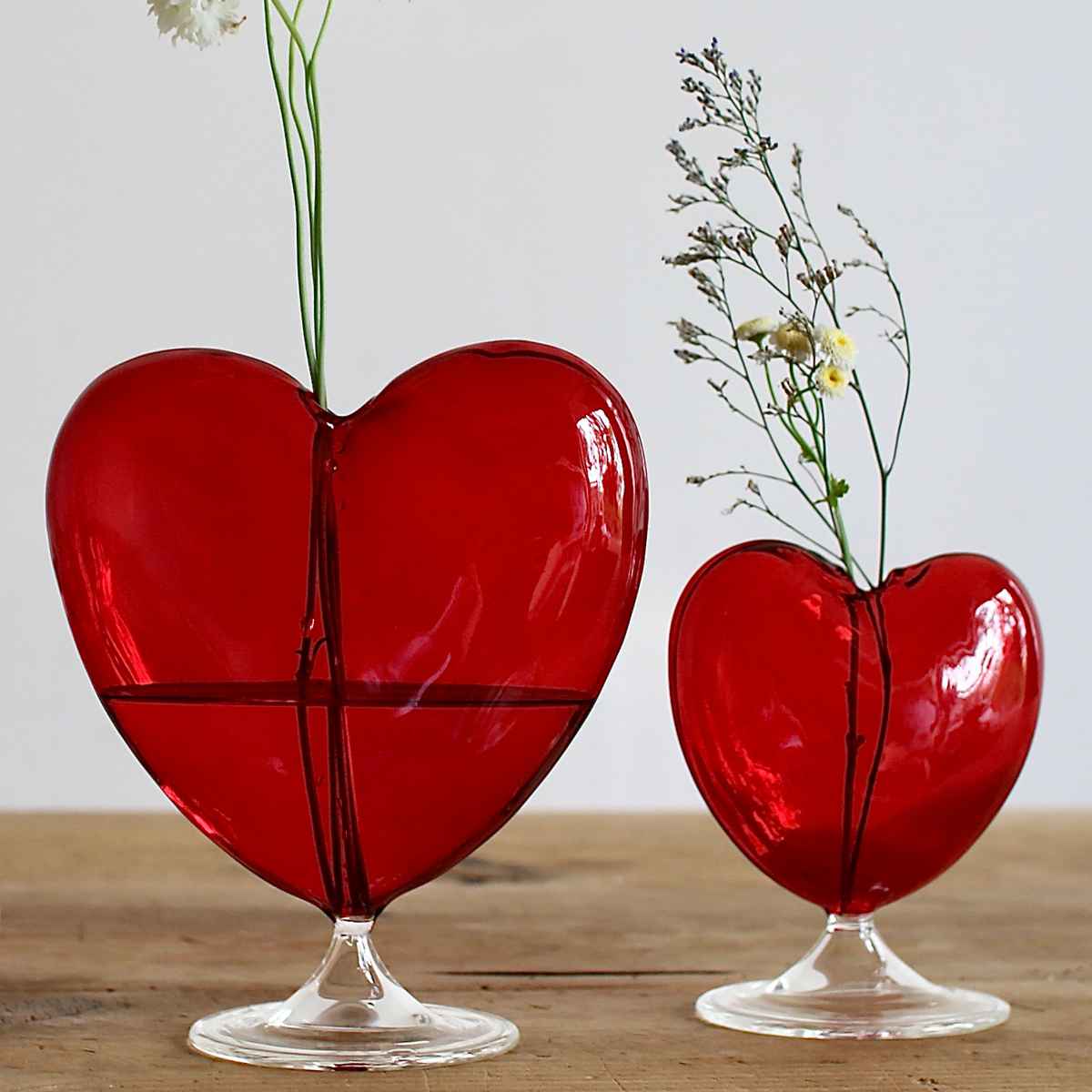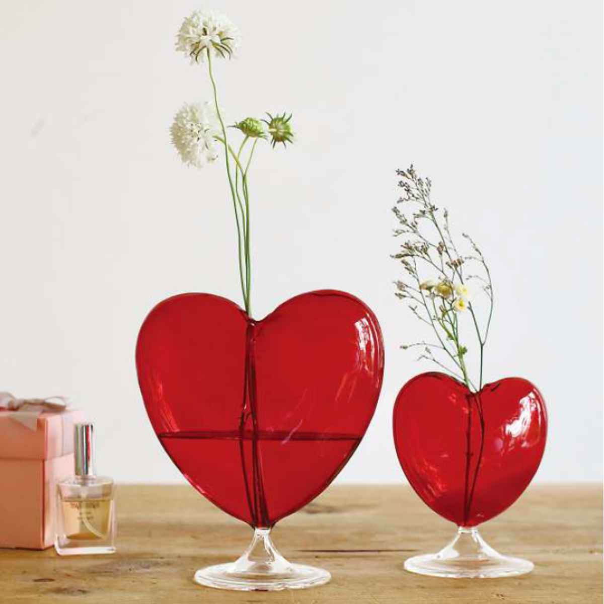 鮮やかなレッドカラーがきらめく ハート型フラワーベース