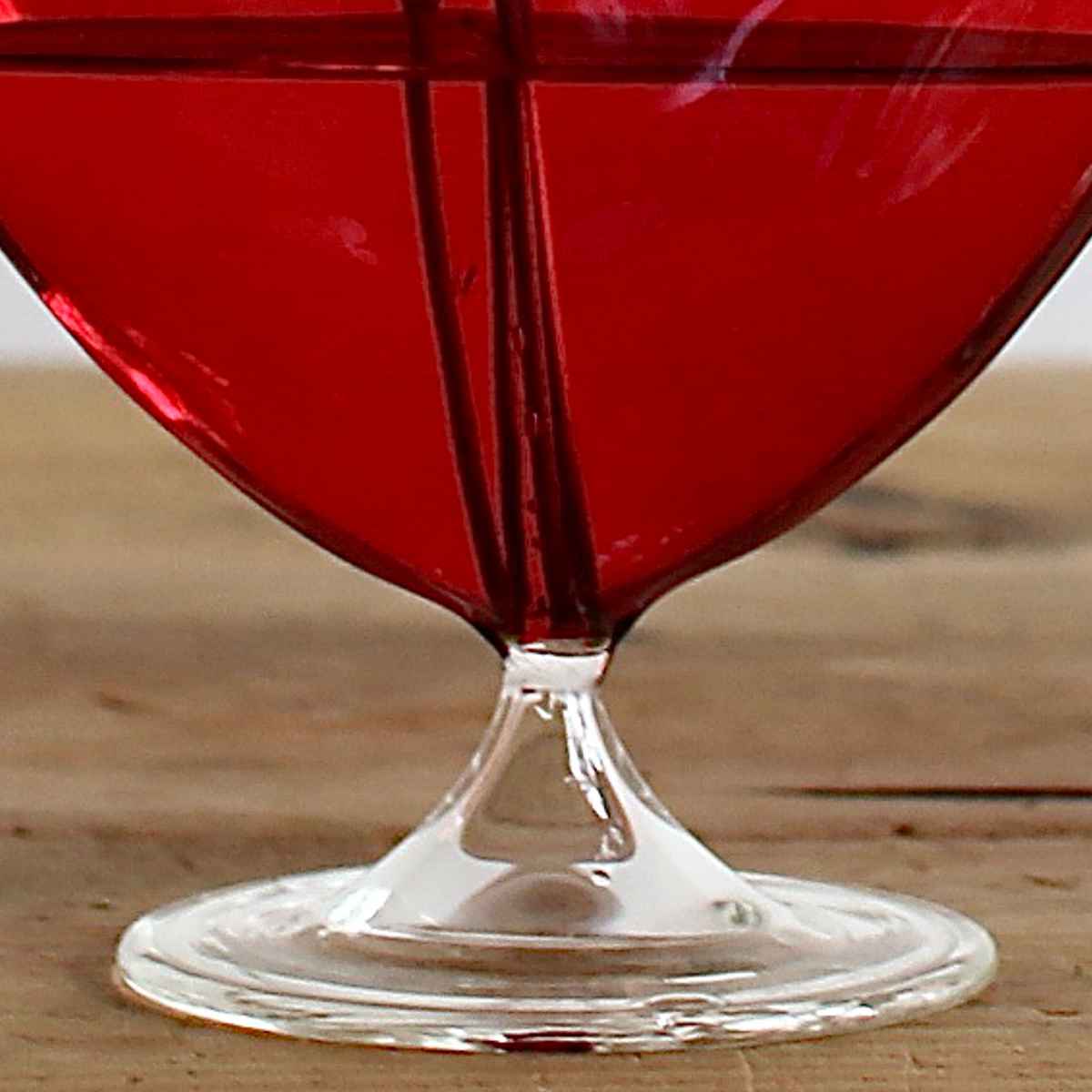 鮮やかなレッドカラーと、クリアガラスの艶々とした質感が特徴です。光に反射すると透明感がより際立ちます。