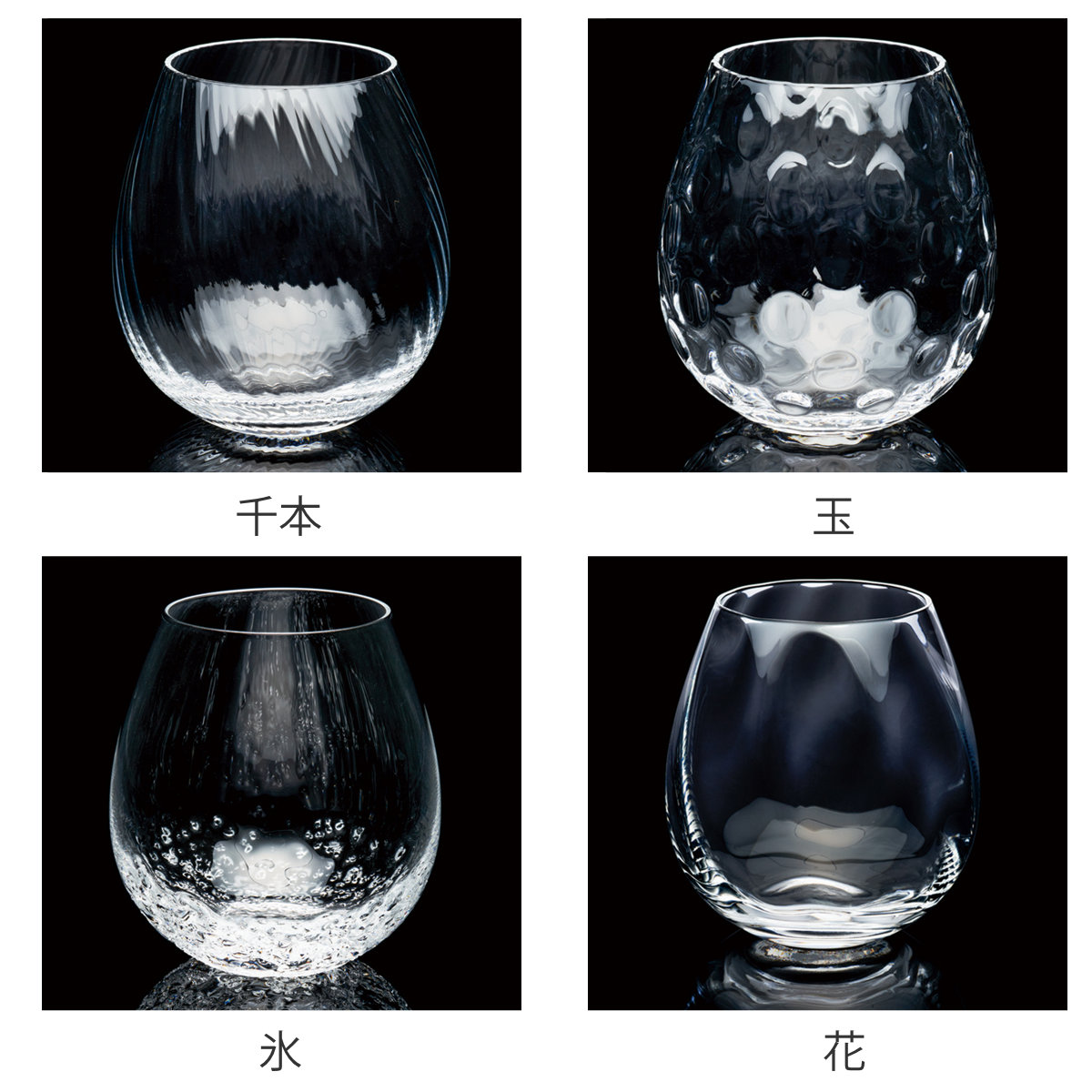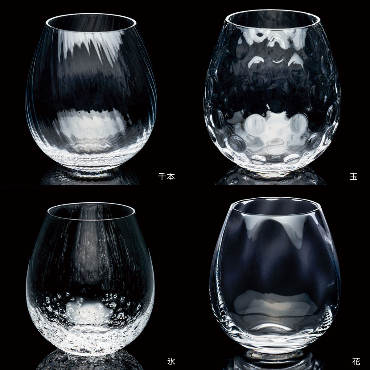 職人の手仕事が生む温かみと透明感が魅力のグラス。ワイングラスのように包み込む口元のすぼまった形が、飲み物の香りを引き立てます。モール型という技法で、型の中にガラスを入れて作られています。透明なガラスを4つの型で成形することで、角度によって異なる表情や輝きを楽しめます。