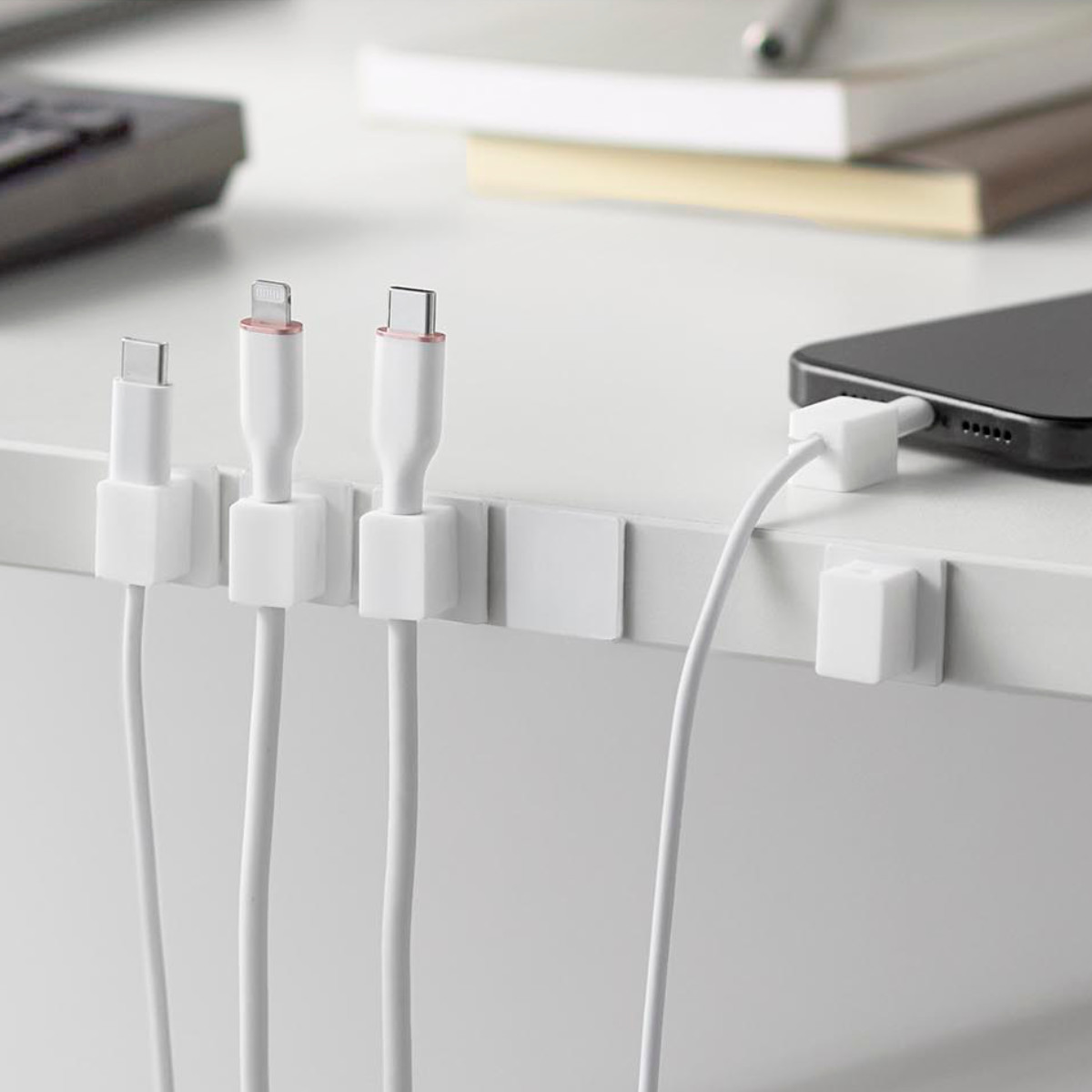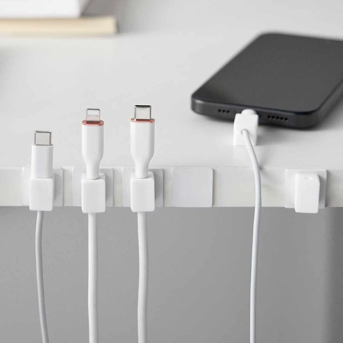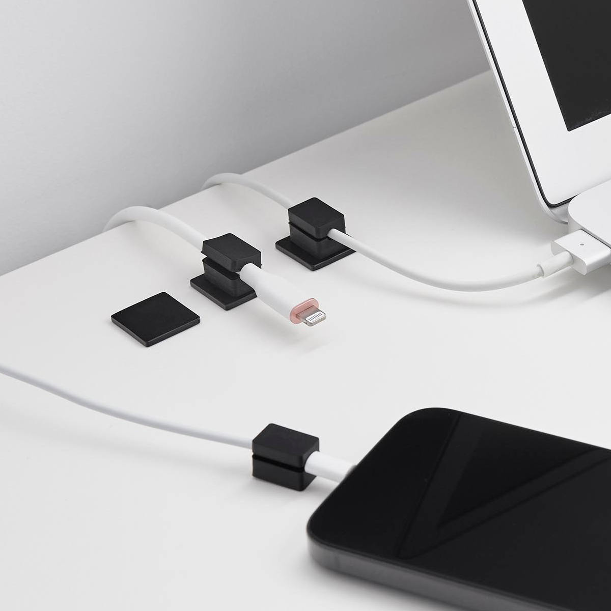 1個ずつ独立しているタイプなので、必要な数だけ取り付けられます。車内など狭いスペースにも対応でき、自由なレイアウトが可能です。ベッドサイドや車内でも、ケーブルが床に落ちず、配線がスッキリ片付きます。