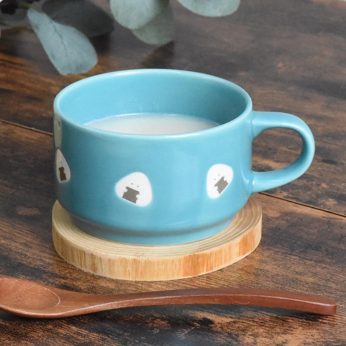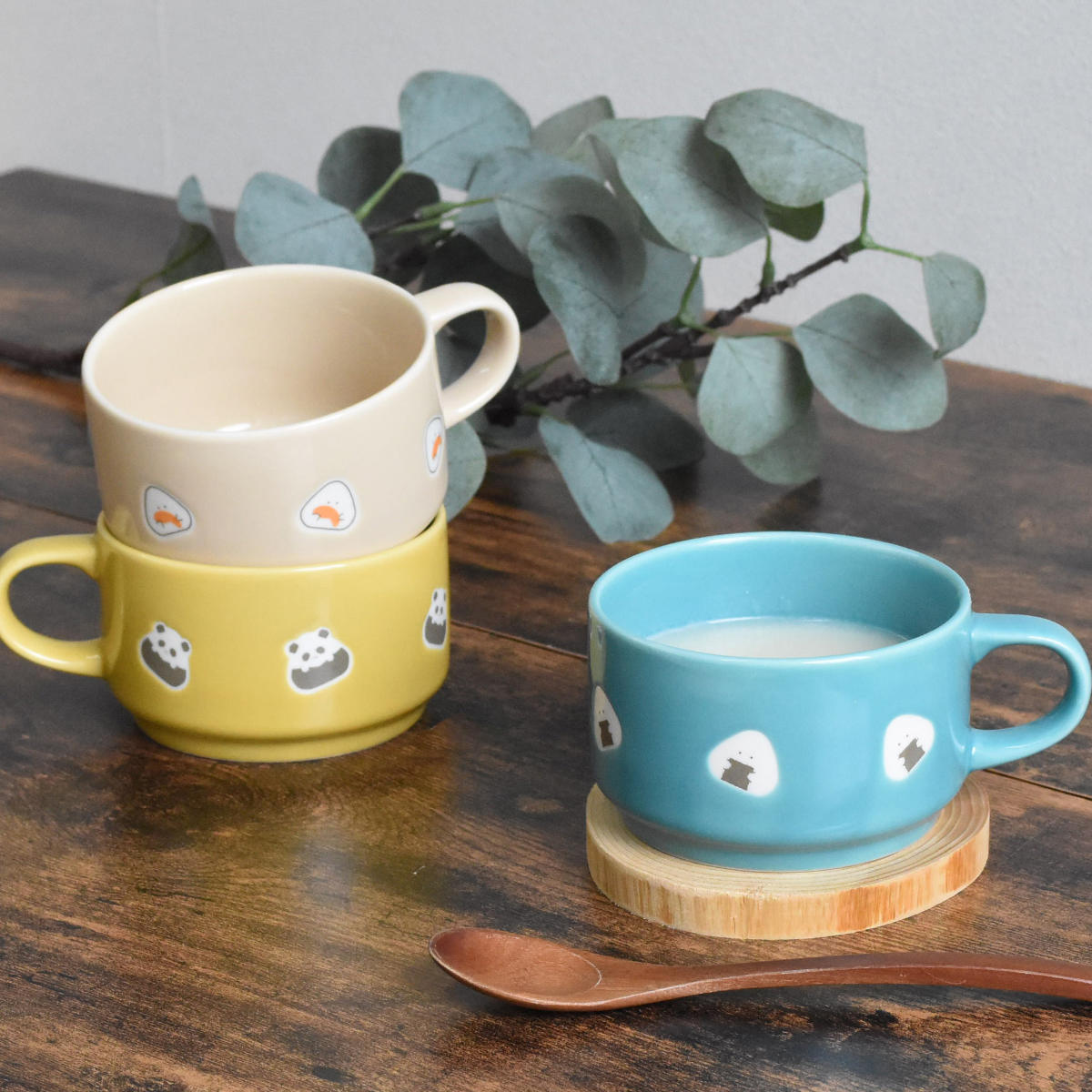 ぐるりと一周、ぎゅっと並んだ手描き風の「おにぎりさん」たちがとってもキュートなスープマグ。どこかゆるくて、見ているだけで癒される、ほっこり可愛いデザインです。毎日の食卓に、小さな笑顔を添えてくれるアイテムです。
