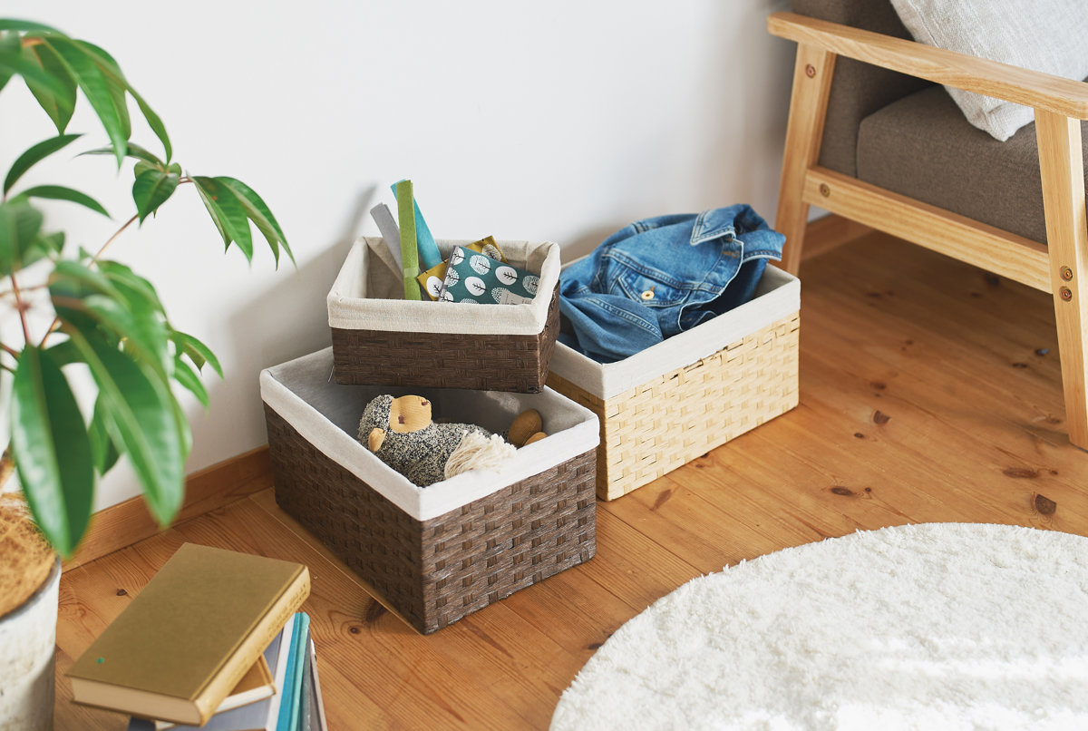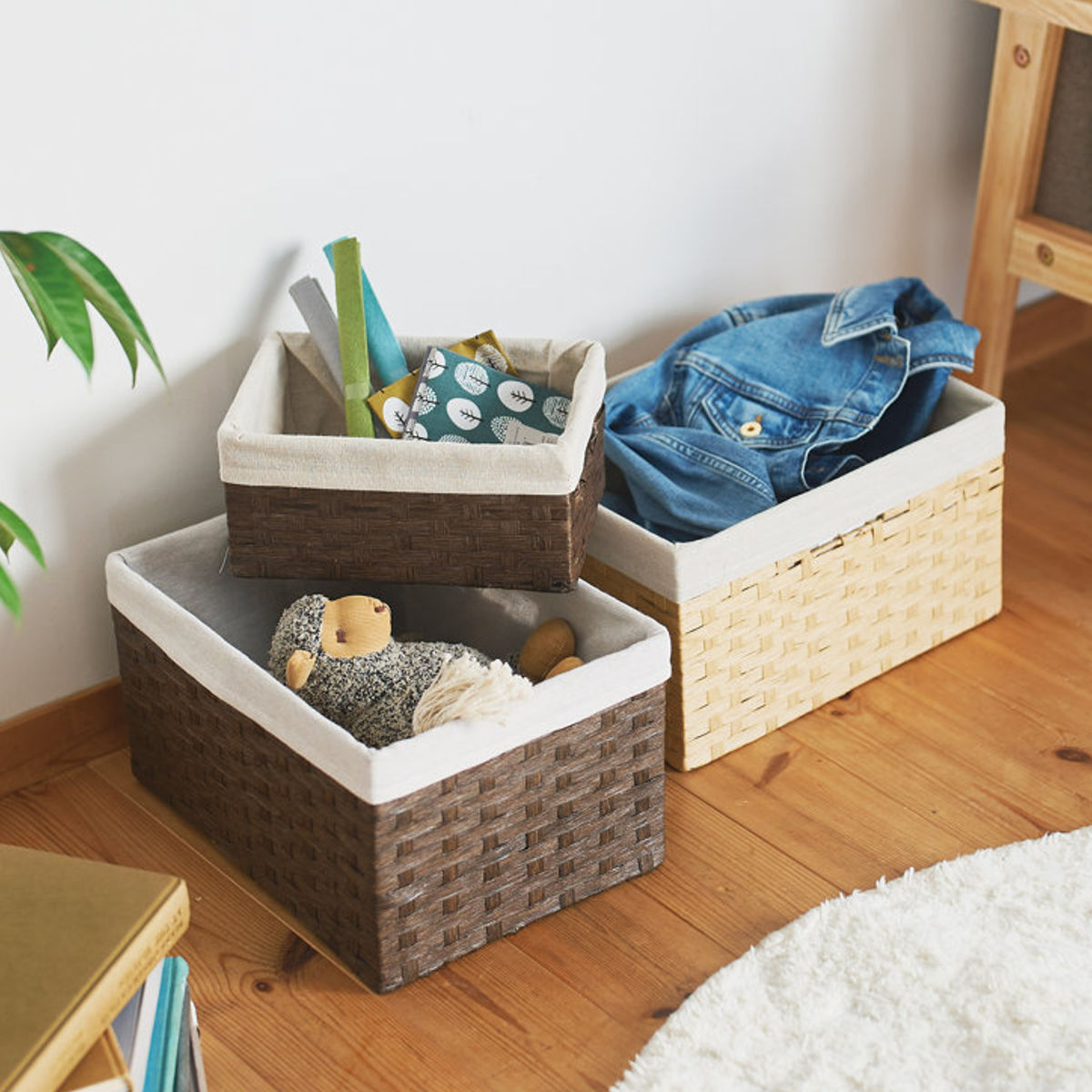 リビングや寝室、玄関などに置くだけでおしゃれな雰囲気を演出します。ナチュラルな風合いで空間に馴染みやすく、隠す収納にも見せる収納にも活躍する、便利でインテリア性の高い収納かごです。