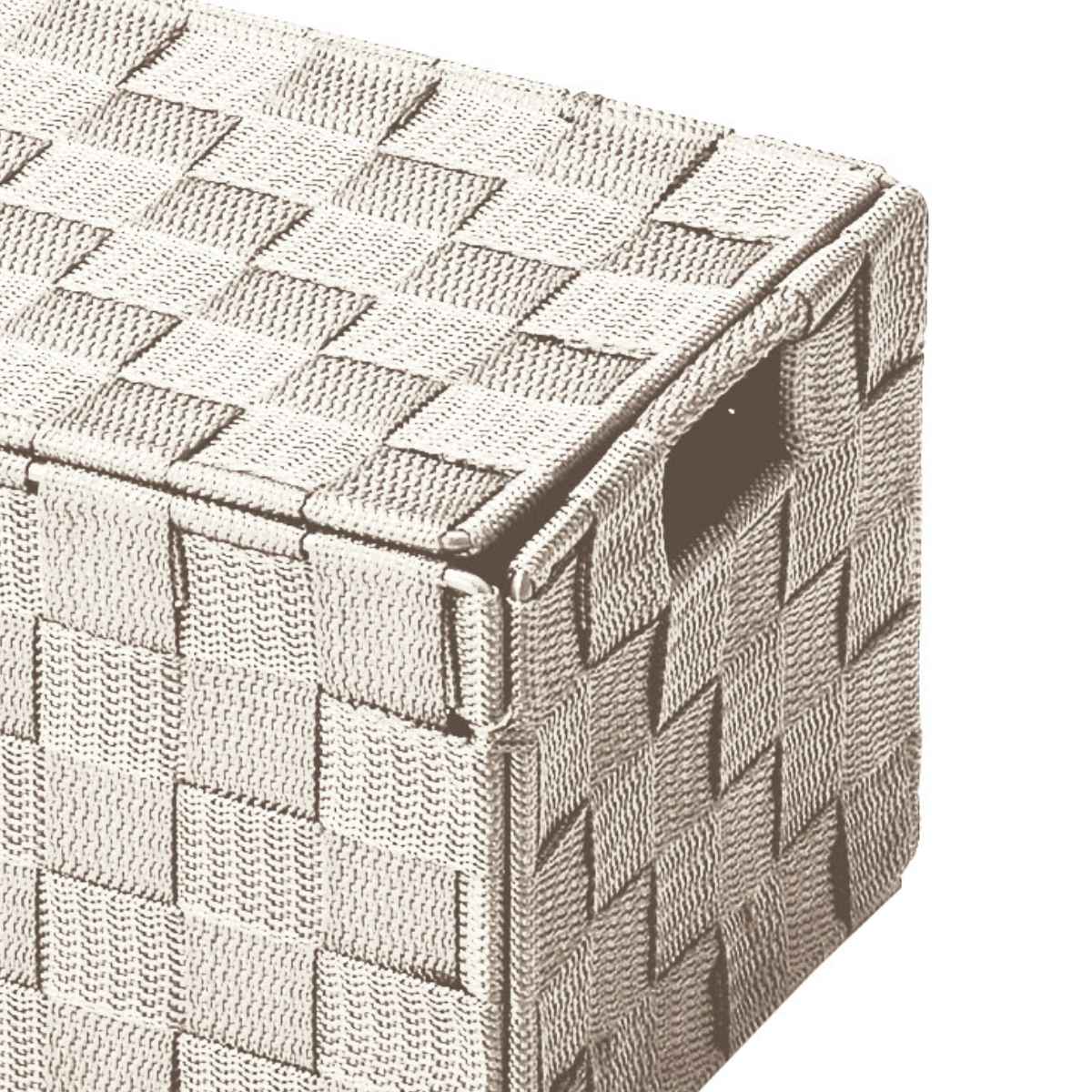 両サイドには持ち手があり、重たいものでも持ち運びがしやすいです。取っ手の穴を利用して、インテリアに馴染みにくいコード類の収納にもおすすめです。