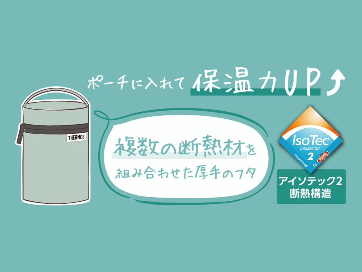アイソテック2断熱構造で、スープジャーの保温・保冷力がさらにアップして、食べごろ温度をキープします。