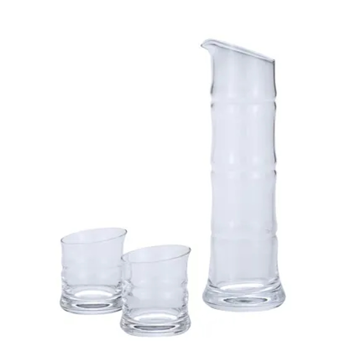 ●日本の風景の中でも際立つ個性を魅せる竹をモチーフにした、美しいフォルムのガラス酒器「竹-bamboo-」シリーズの長注器とぐいのみの3点セットです。