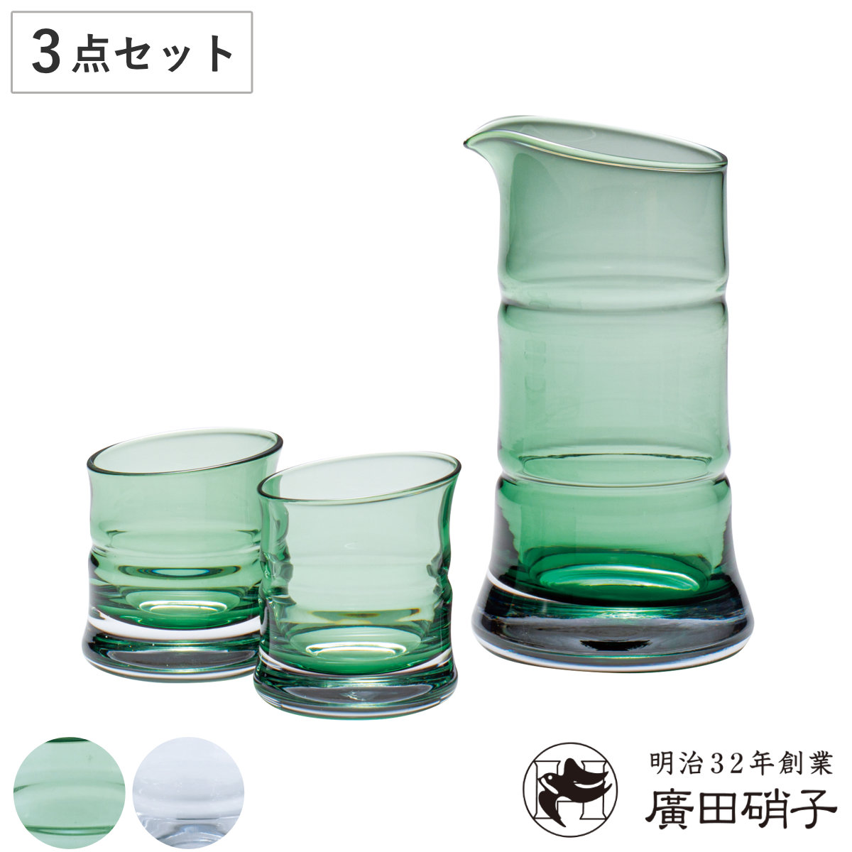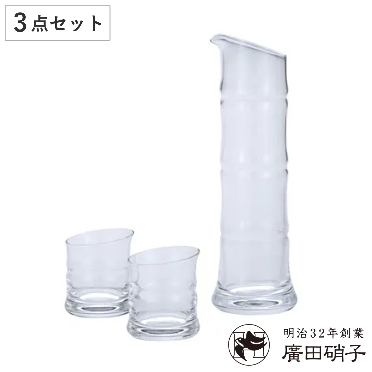 ●日本の風景の中でも際立つ個性を魅せる竹をモチーフにした、美しいフォルムのガラス酒器「竹-bamboo-」シリーズの長片口とぐいのみ大の3点セットです。