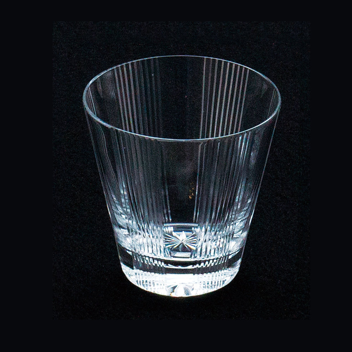 日本の伝統文様「菊」と「十草」を組み合わせた「菊に十草」。グラス底の菊の華やかさと、まっすぐに伸びる十草の凛としたラインが調和し、江戸切子ならではの繊細な輝きを放ちます。