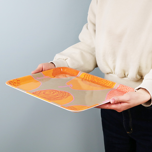 キッチンのお盆としてはもちろん、ランチョンマットの代わりやアクセサリーの受け皿など使い方は色々です。洋なしモチーフのデザインが、パーティやおもてなしなど様々なシーンを明るく彩ります。