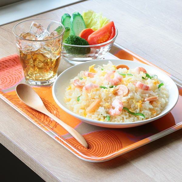 のせたものが滑りにくくなる、特殊加工を施されています。トレーに食器をのせた時に安定感があるので持ち運びにも安心です。