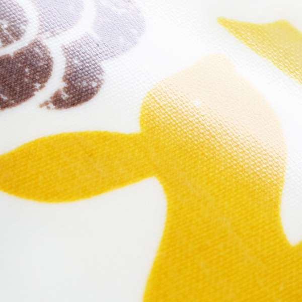 コーティングで、表面はつるりとしています。天然繊維の生地を使用した、布のあたたかい風合いをお楽しみください。