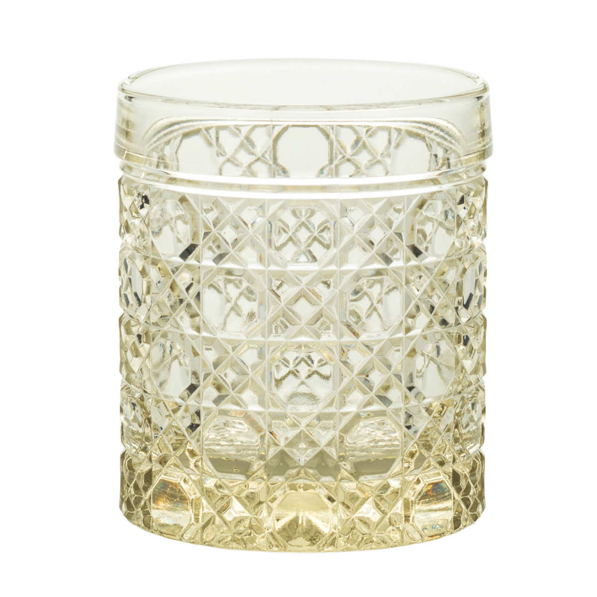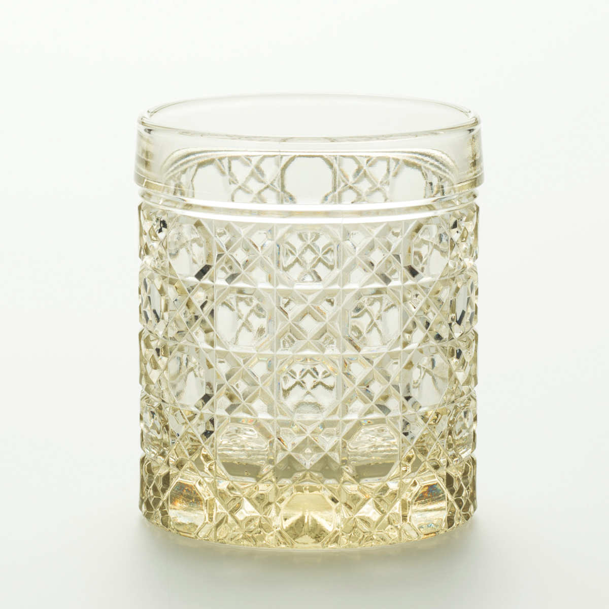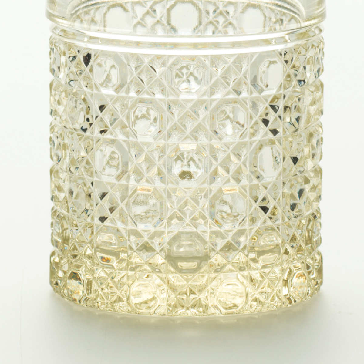 小ぶりながらも、繊細な紋様がキラリと輝く存在感のあるショットグラスです。カットガラスのような華やかな煌めきと、手に取ったときの重厚感が魅力。プレス製法によって生まれる、美しさと実用性を兼ね備えた一品です。