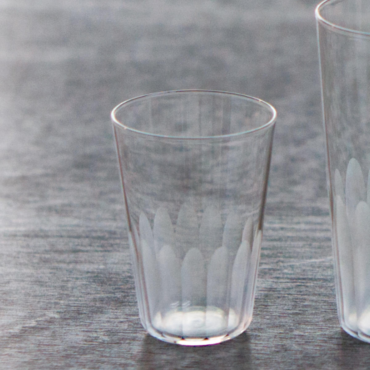 1950年代、廣田硝子が欧米向けに輸出していたグラスを復刻。当時と同じ東京での製造・加工にこだわった、どこか懐かしくも洗練されたデザイン。容量は75mlでショットグラスのような大きさ。リキュールなどの小量のお酒に最適です。