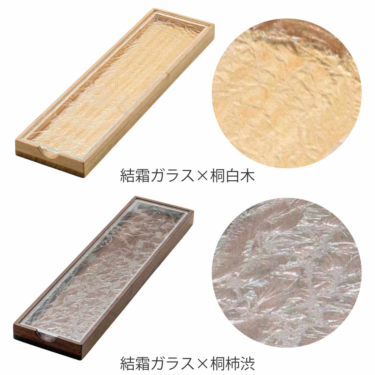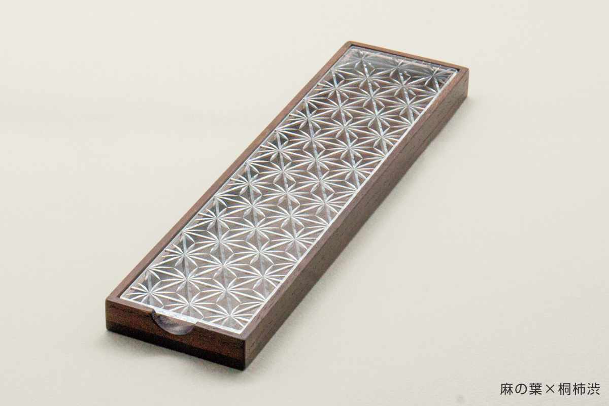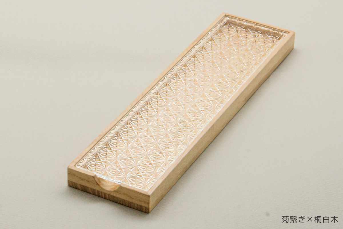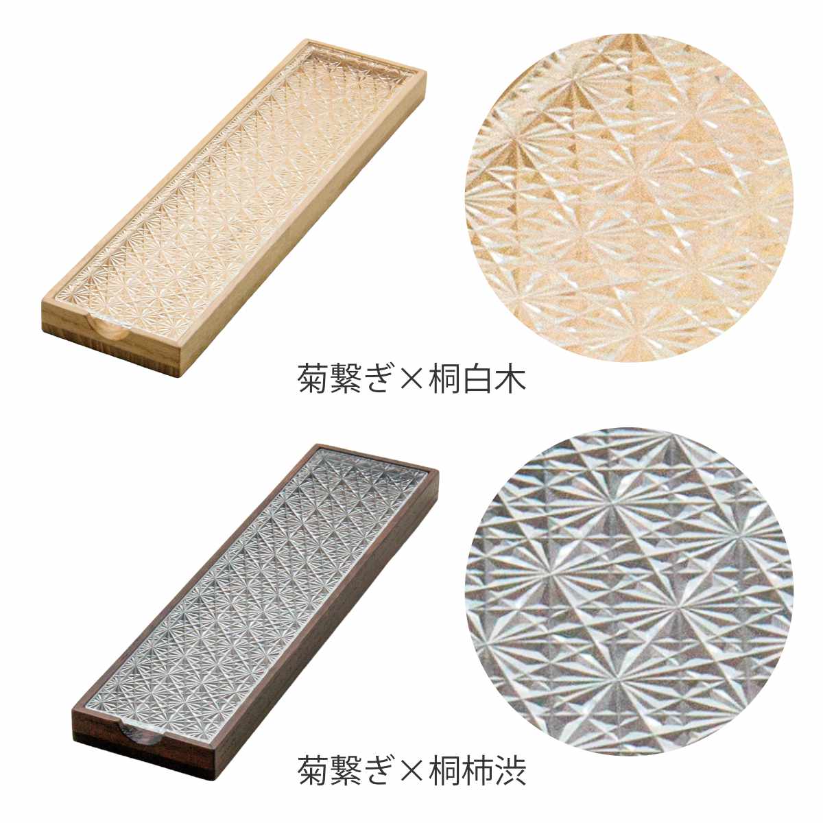 柿渋とクリア塗装で仕上げた桐は江戸切子の美しさを際立たせ、あたたかみのあるコントラストを生み出します。