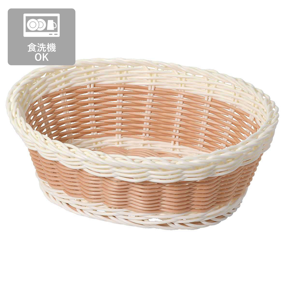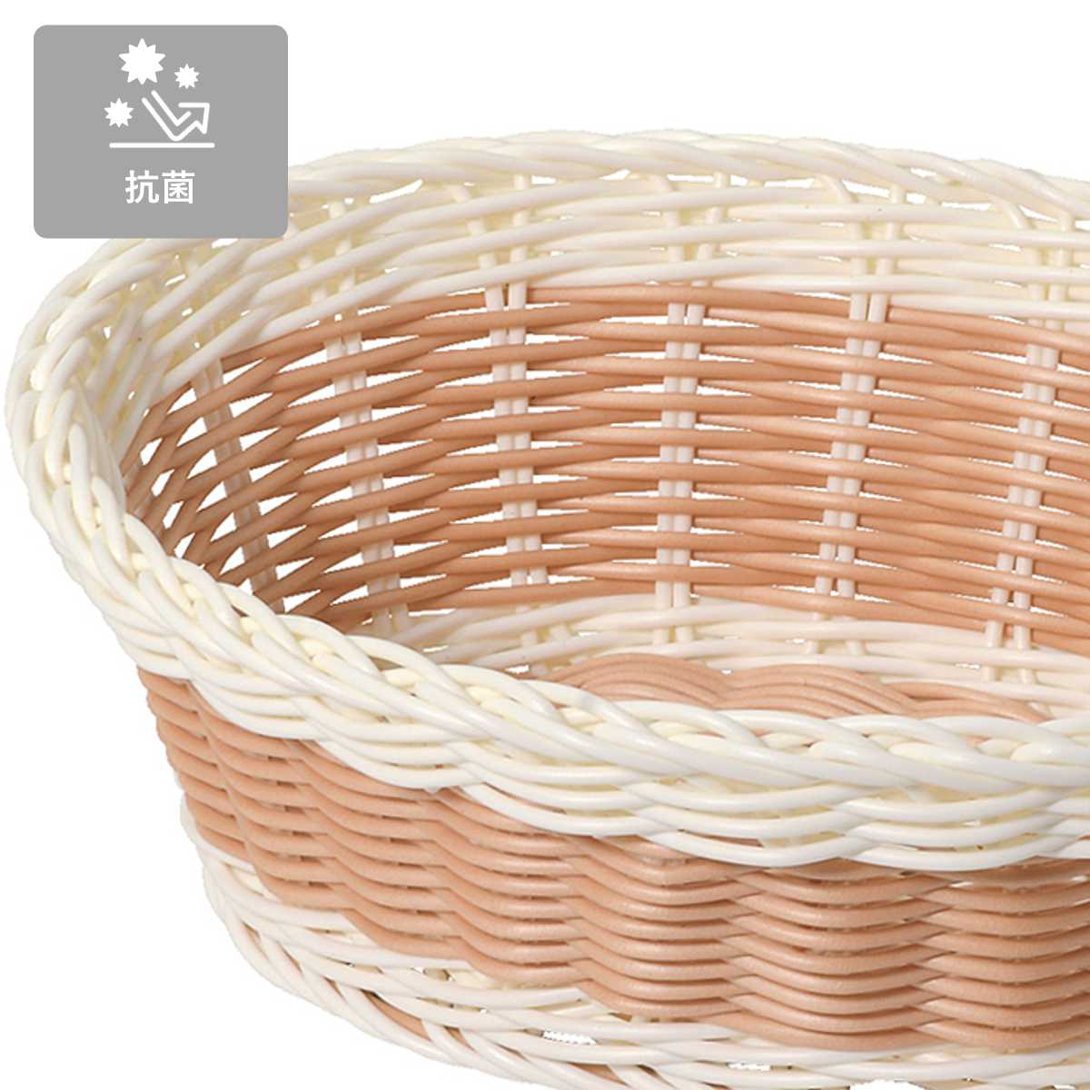 ナチュラルな配色がおしゃれなバスケットです。水洗いできるので、食品の盛り付けにも安心してお使いいただけます。