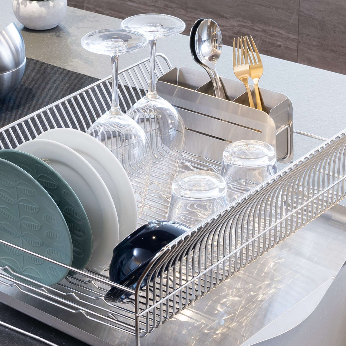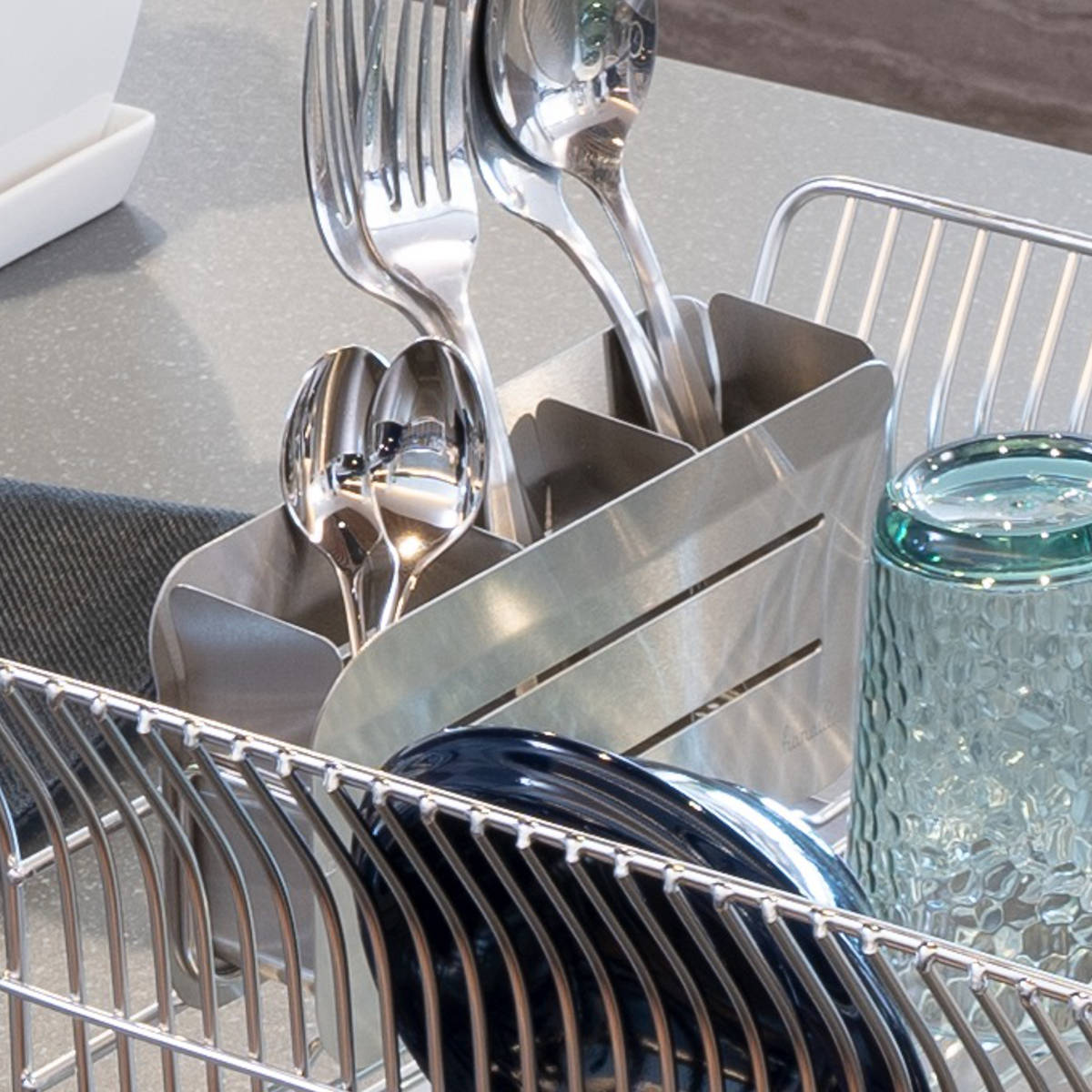 カトラリーポケットは単独でも使用でき、設置面を傷つけないシリコーンゴム付き。水切りしたカトラリーをそのまま収納棚や食卓に運べ、毎日の食事準備をスマートにサポートします。
