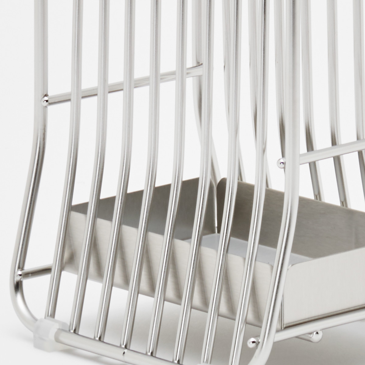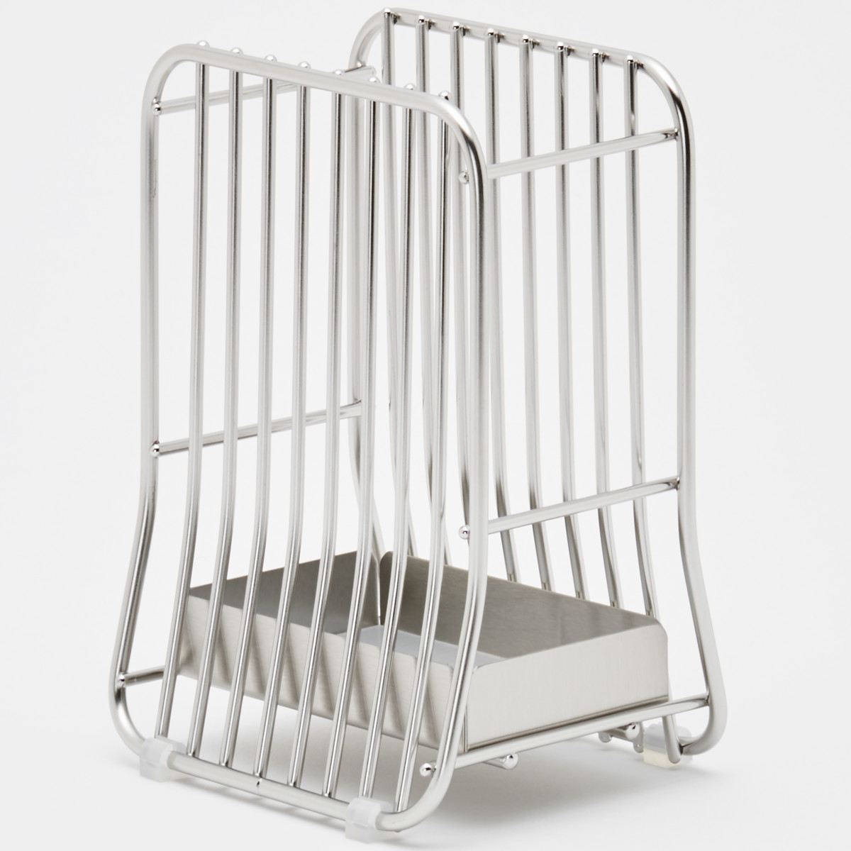 下に向かって広がる形状で、スリムなのに倒れにくい設計。背の高いキッチンツールもしっかり安定して立てられます。