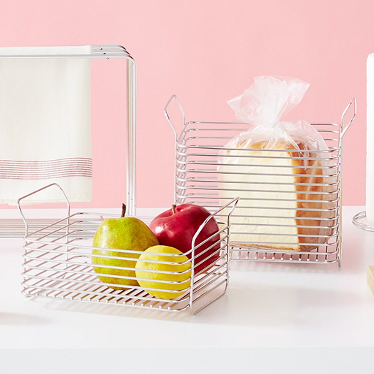 毎日使うキッチン周りの小物をすっきり整理できるシンプルな収納バスケット。パンやコーヒー、調味料やお菓子のストックにも活躍します。ワイヤーデザインで脚が付いているため通気性が良く、圧迫感がないのも嬉しいポイントです。