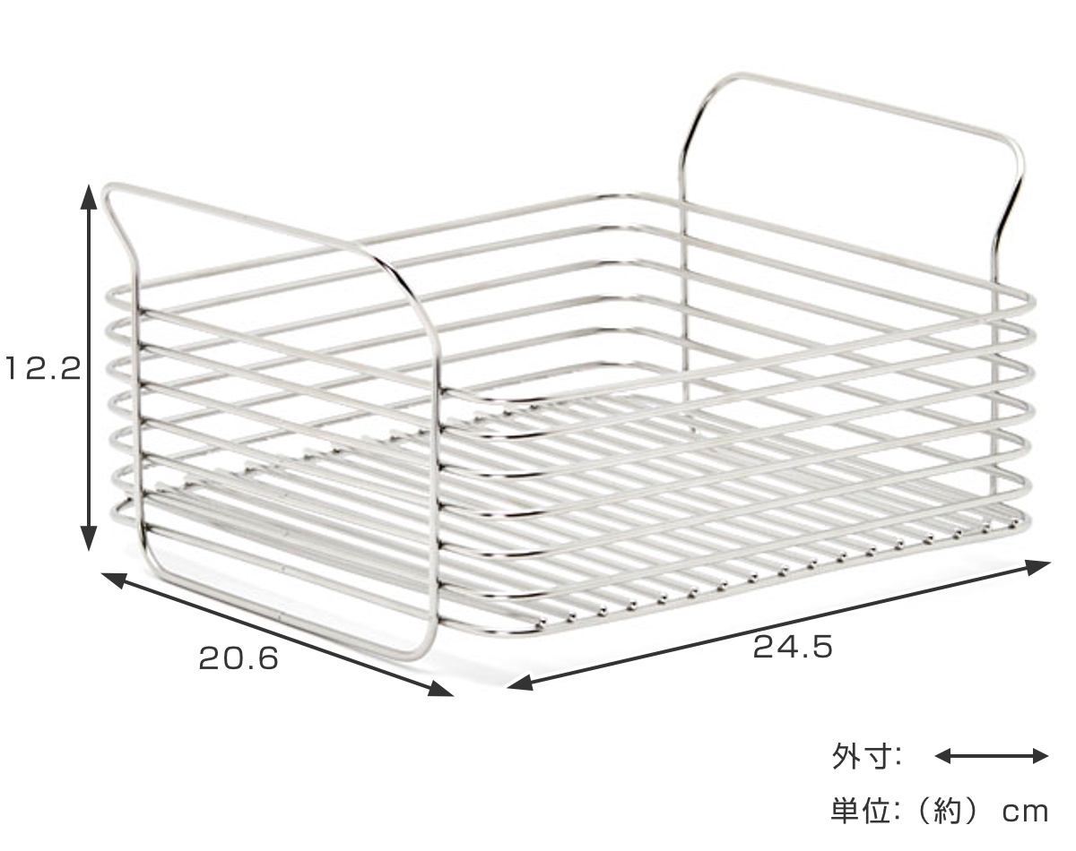 バスケットにはハンドルが付いており、移動や掃除のときにサッと持ち上げて運べます。日々のキッチン作業を快適にサポートしてくれる便利な仕様です。