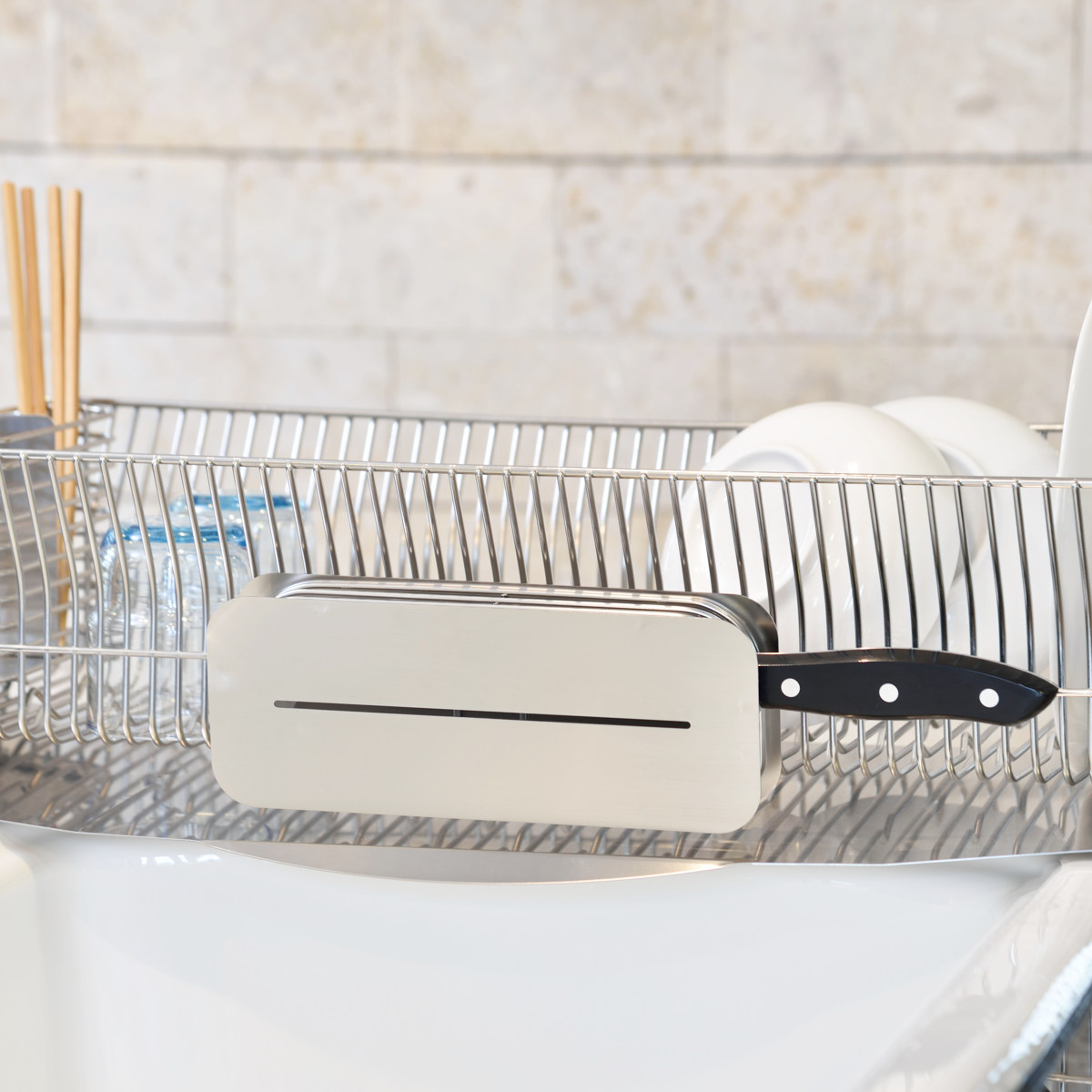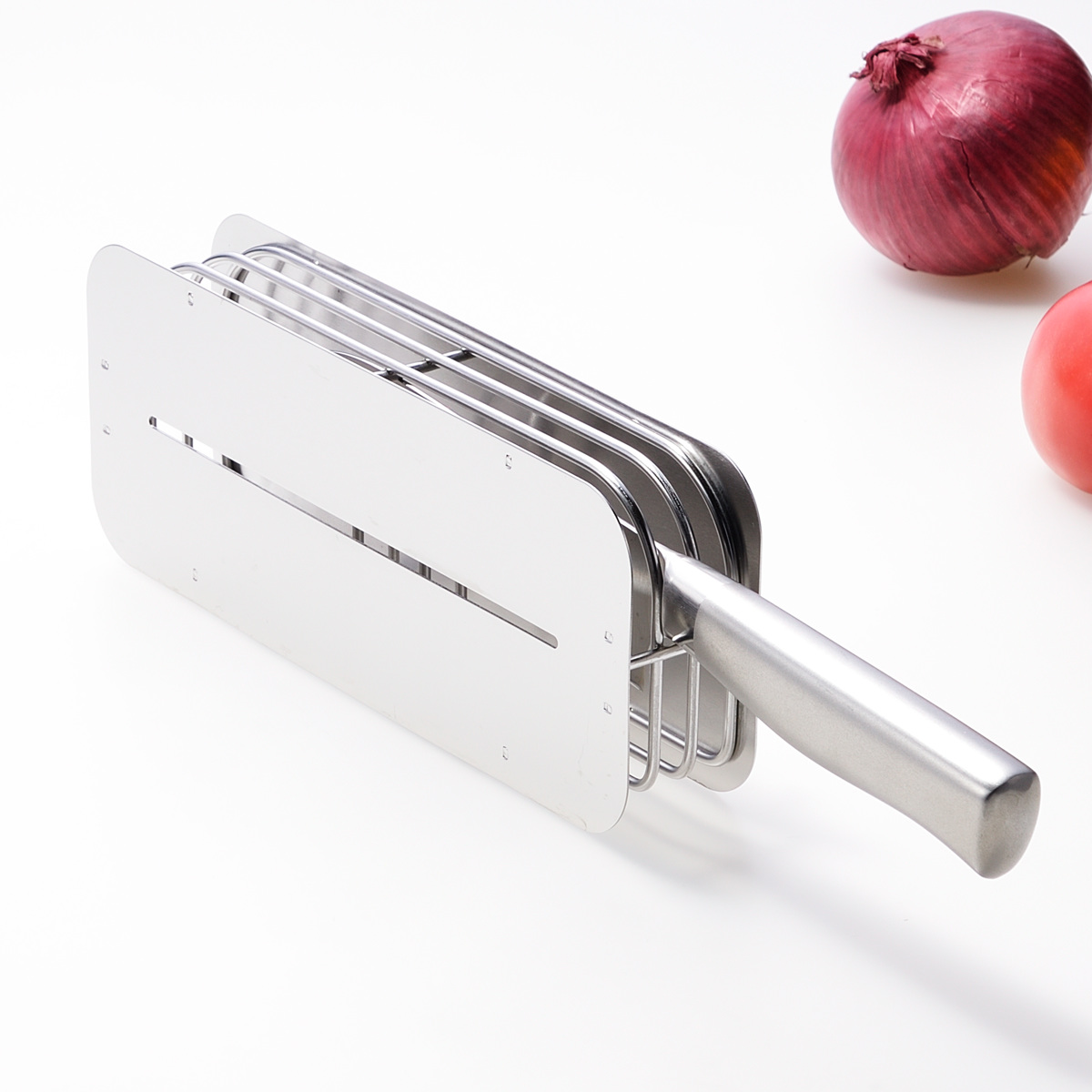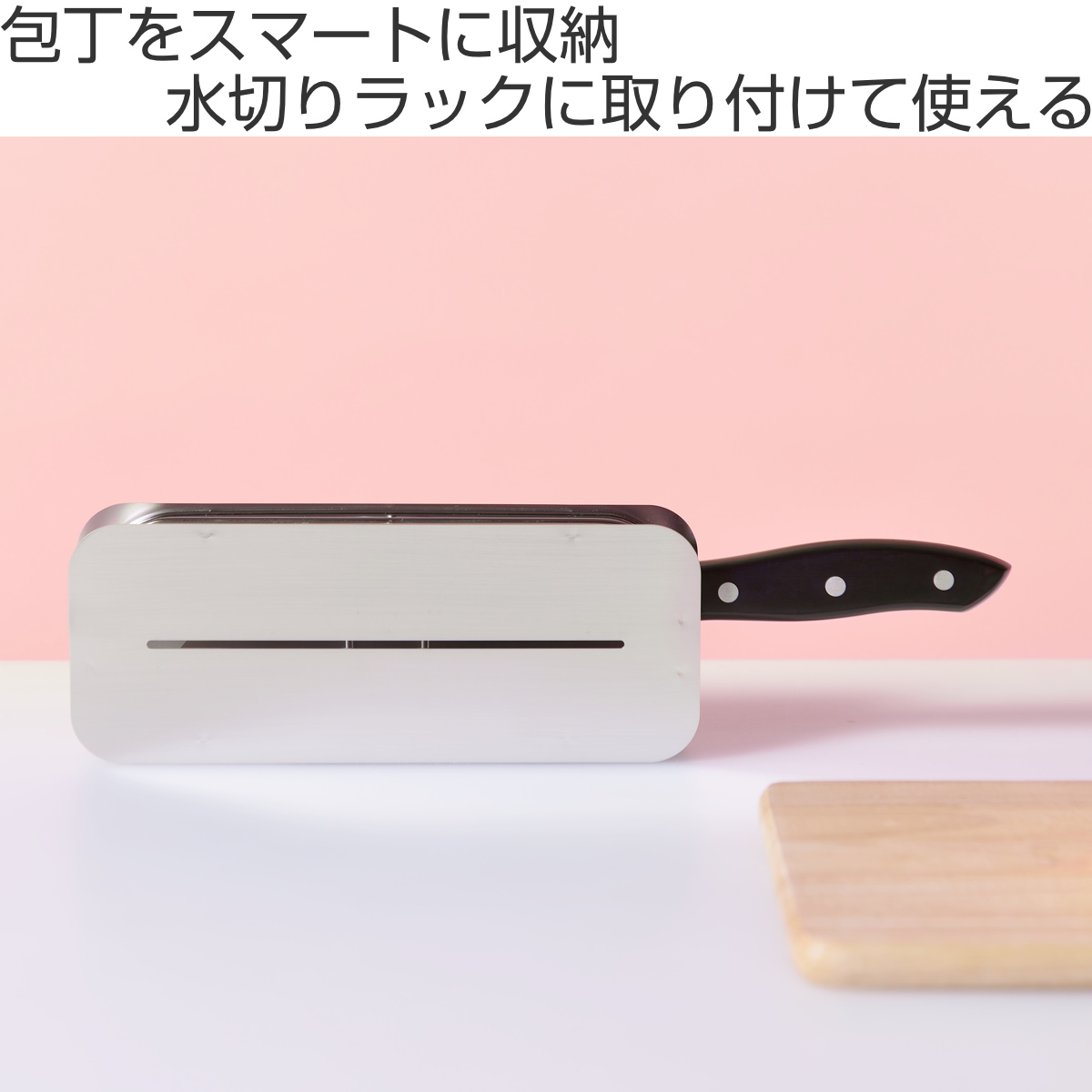 包丁を差し込むと柄の重みで刃が浮くため、刃先が直接触れにくく傷やサビを防ぎます。大切な包丁を長く愛用できる安心設計です。