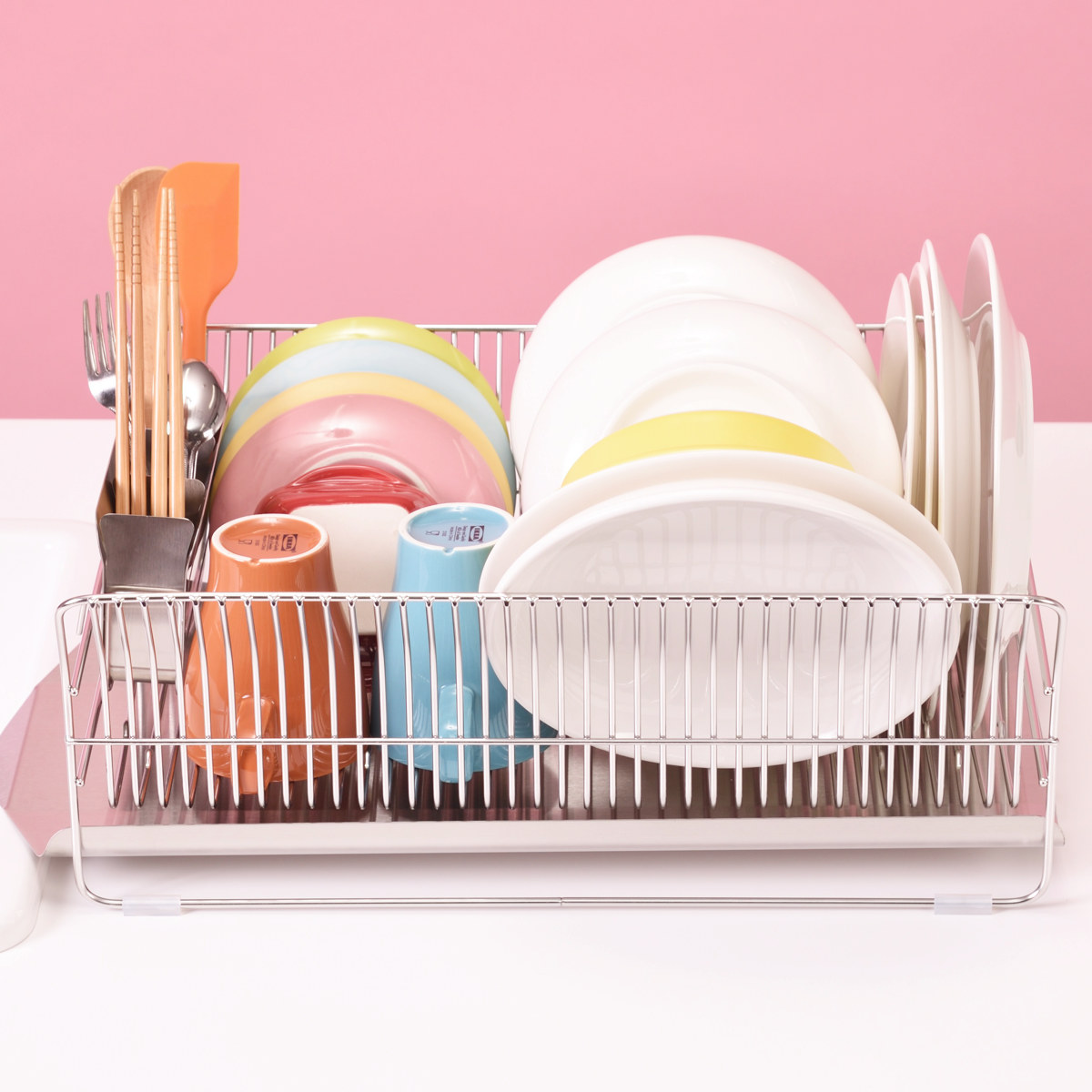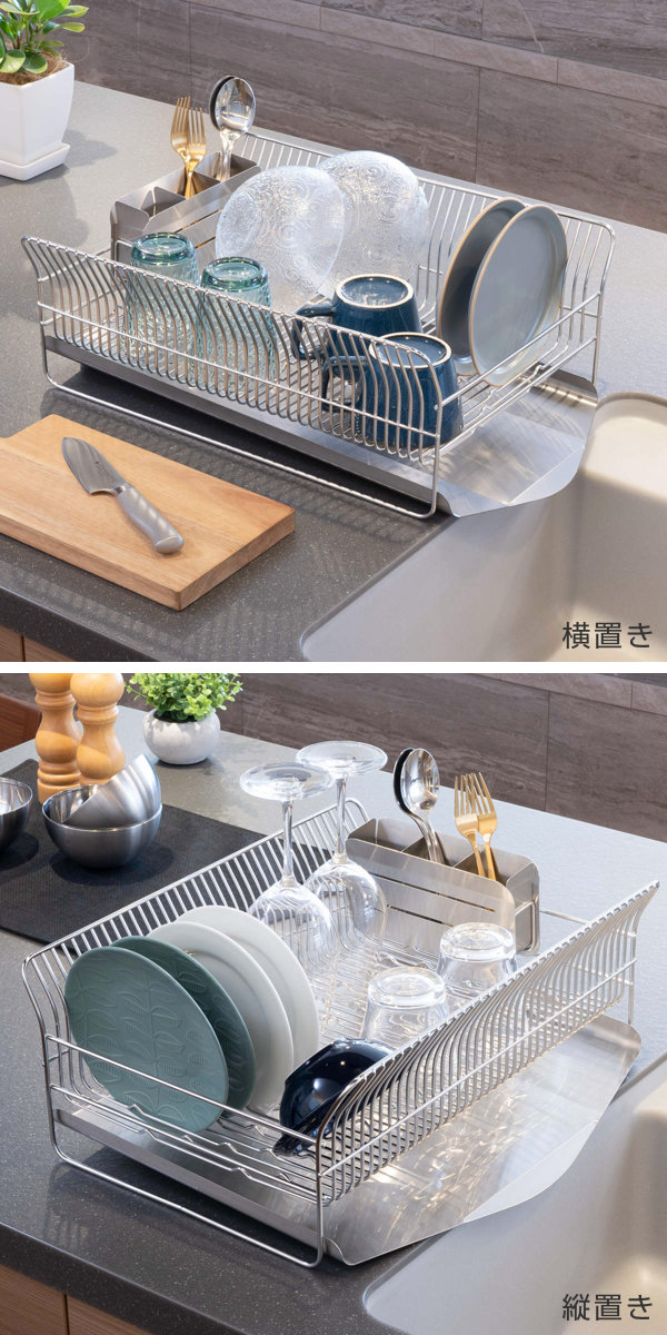 スリムサイズなので、シンクまわりの限られたスペースにもすっきり収まります。普段は食洗機を使う方も、サブの水切りラックとして気軽に活用できます。