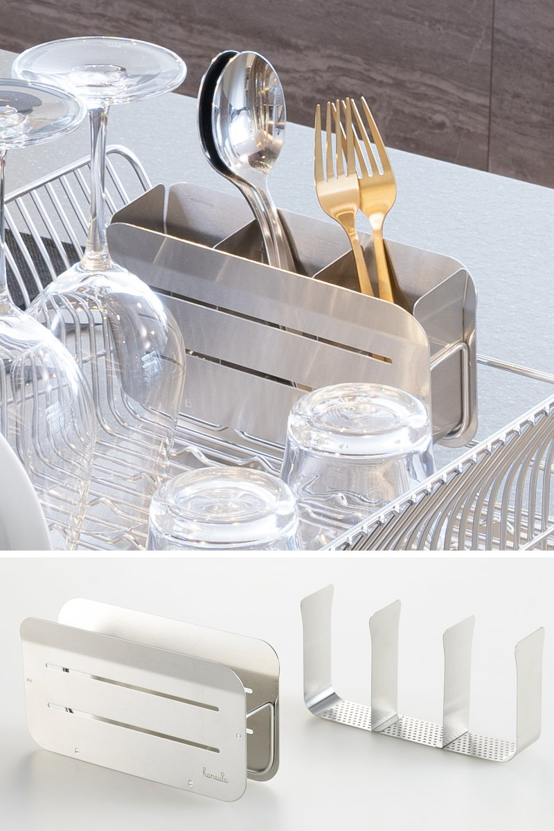 思わず鼻歌がこぼれるような使い心地のキッチンツールブランド「hanauta」の水切りラックです。熟練の技で仕上げられた上質な佇まいは、アクセサリーのように暮らしを彩り、毎日の水切りを快適にしてくれます。