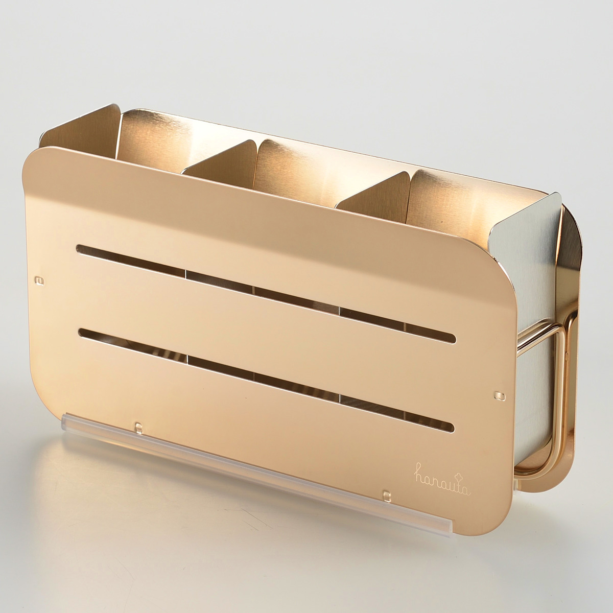 hanautaシリーズの水切りラックに取り付けて使えるカトラリーポケットです。熟練の技で磨き上げられた上質なデザインが、暮らしに凛とした彩りを添え、毎日の水切りを心地よく演出します。