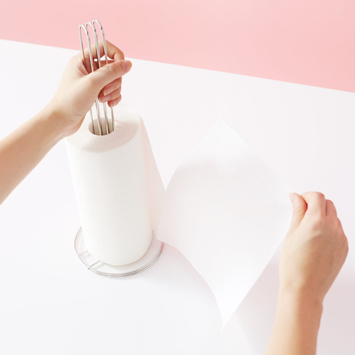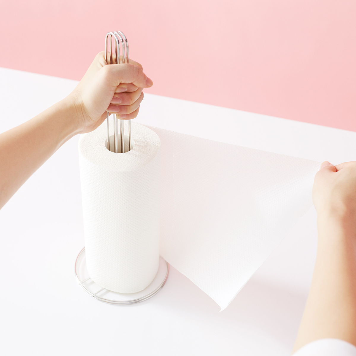 縦置きスタンドタイプで、ちょっとしたスペースにもスッと設置可能。手元ですぐにキッチンペーパーを使えます。シンプルで洗練されたデザインは、キッチンをスマートに演出します。