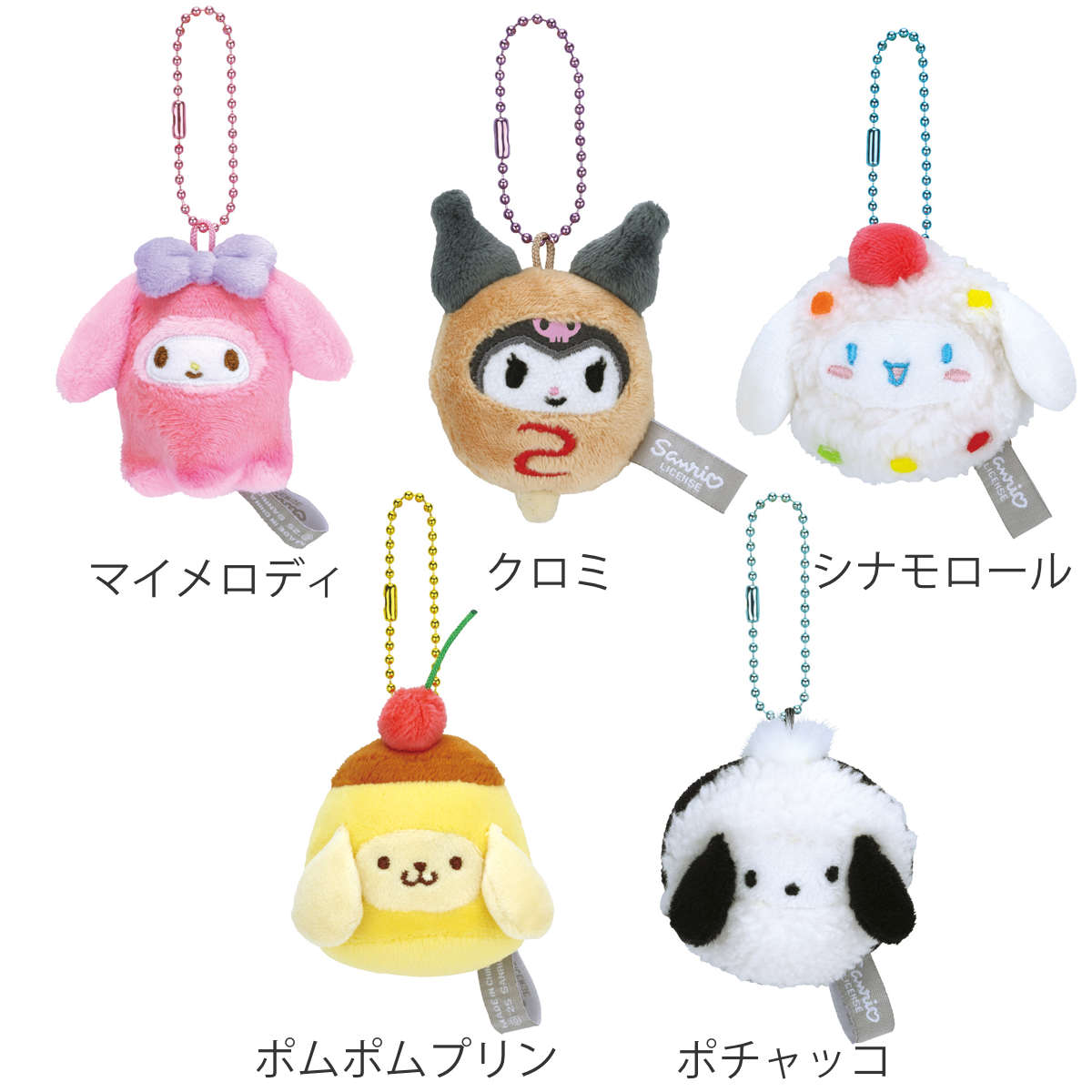 サンリオの人気キャラクターたちが食べ物になりきった、見ているだけで癒されるキーホルダーです。嬉しそうな表情が、さらに愛らしさを引き立てます。