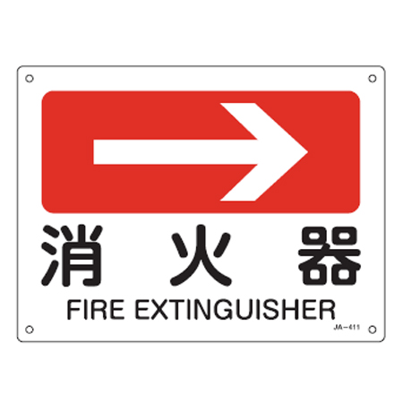 ●矢印と日本語・英語の2カ国語で、消火器の位置を示します。