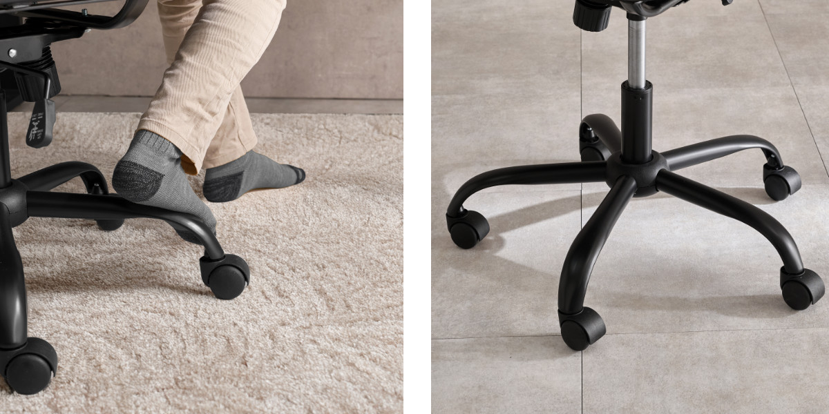 移動に便利なキャスター付きです。安定感のある5本脚です。