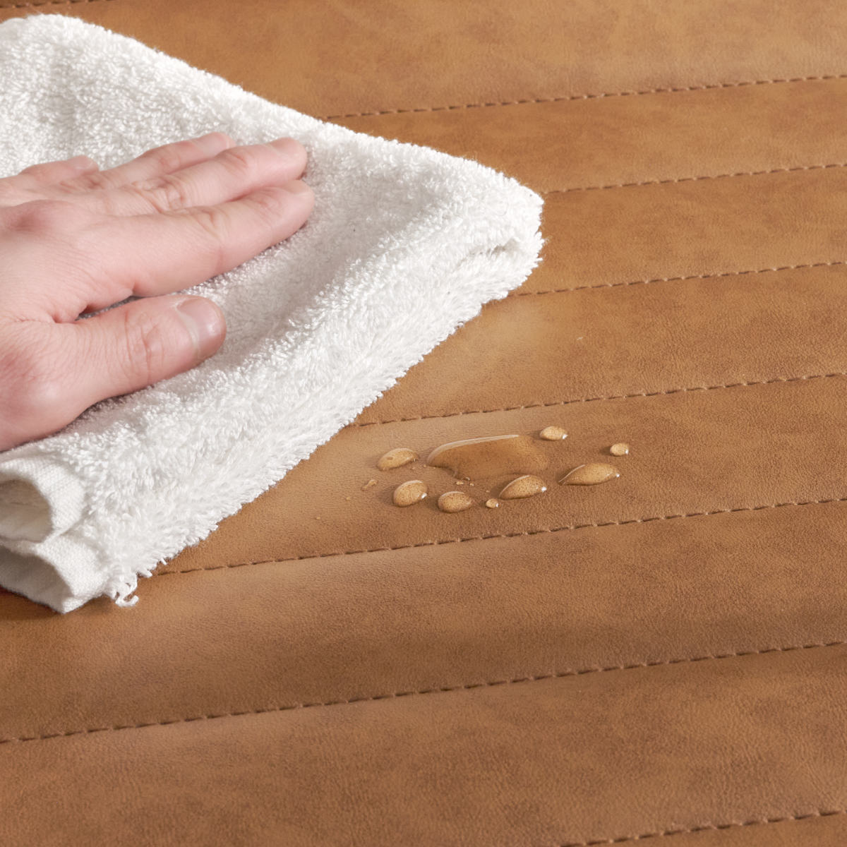 水や汚れに強いレザー調PVC。飲み物をこぼしてもサッと拭くだけで綺麗になります。