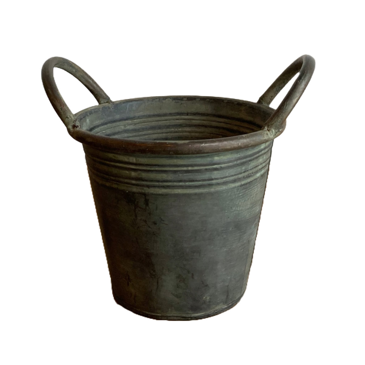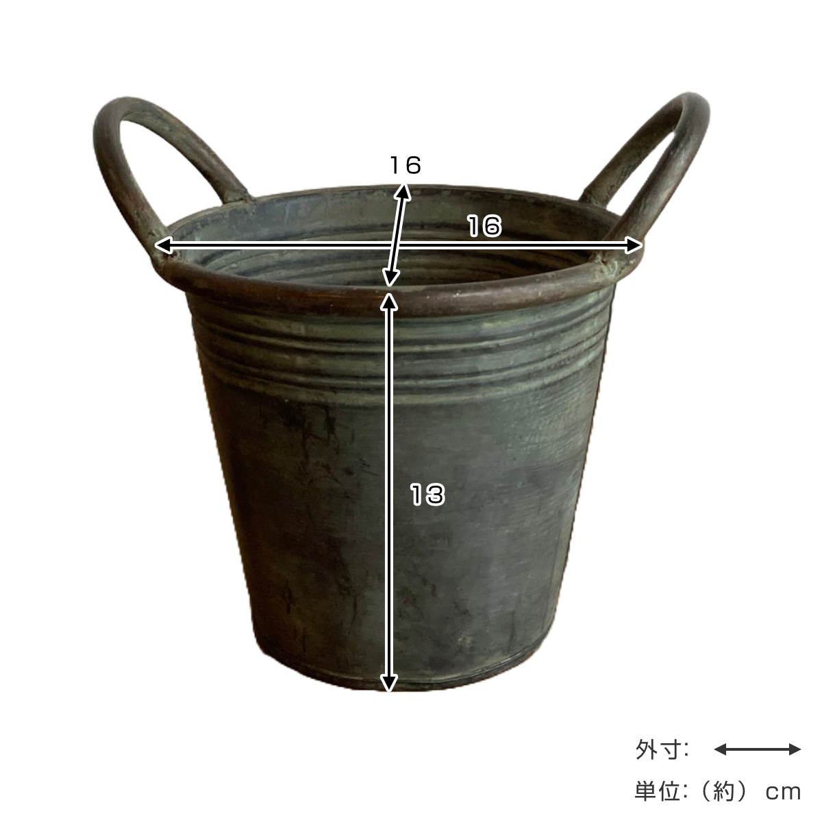 ナチュラルで素朴な風合いが魅力のブリキハンドルポット。グリーンやハーブの寄せ植えにぴったりです。