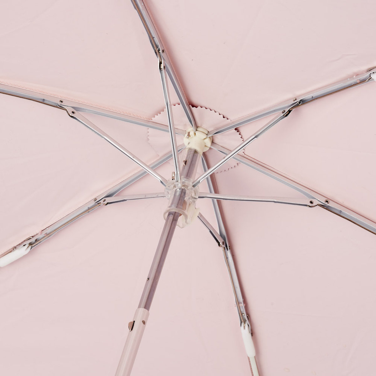傘のフチ対面2箇所に車のライトが当たると光って存在をアピールする反射テープが付いています。