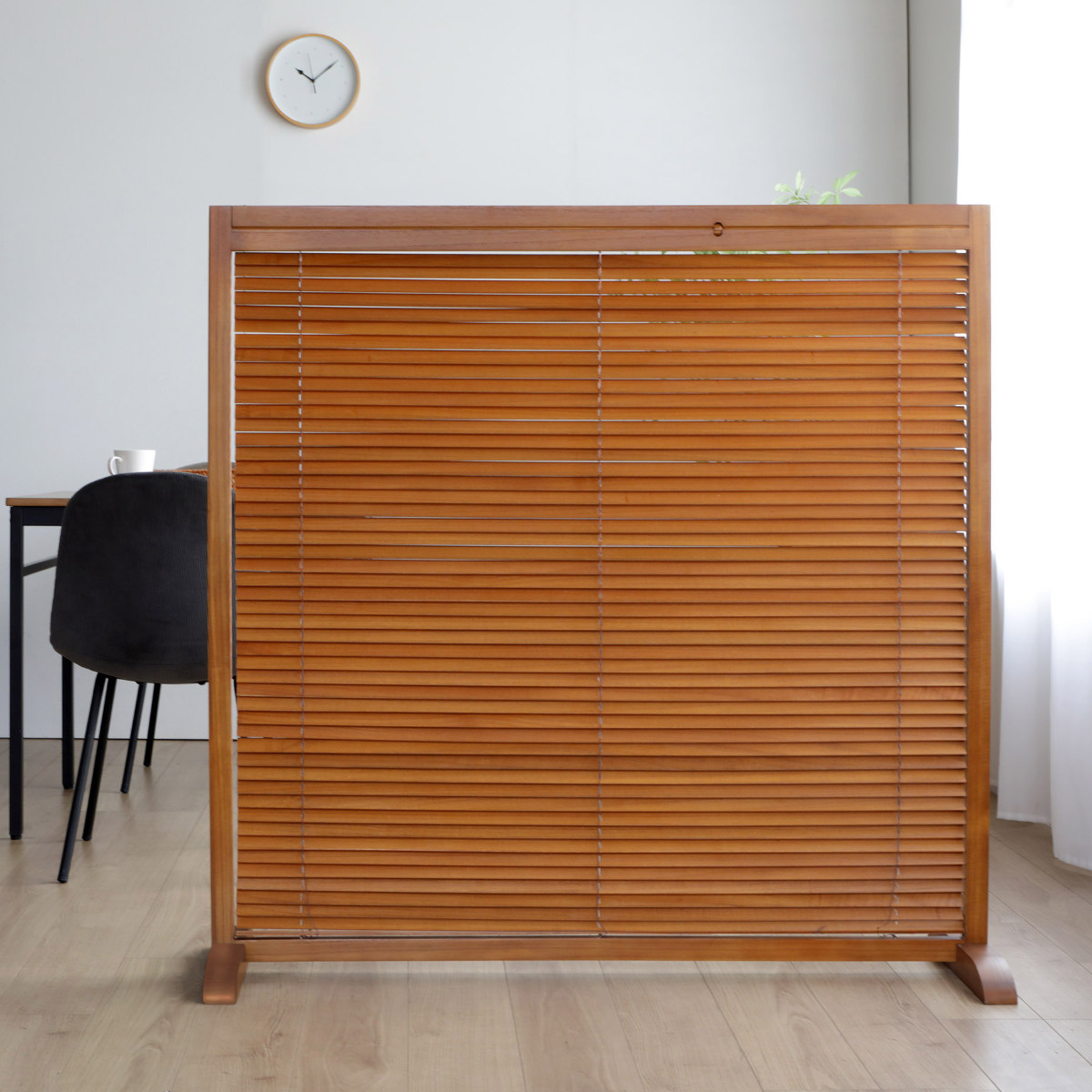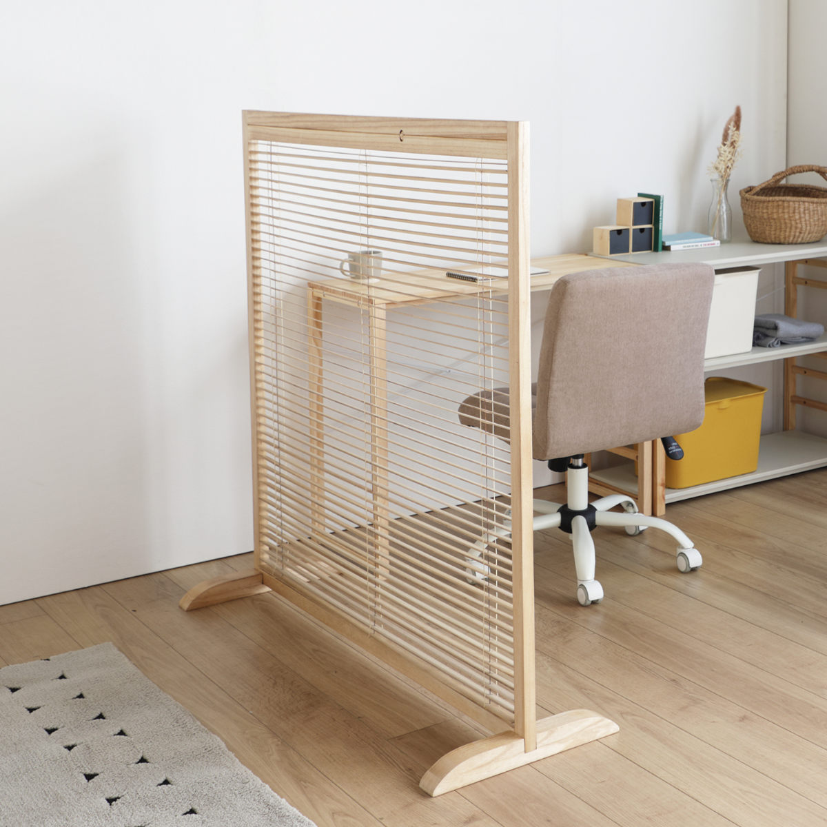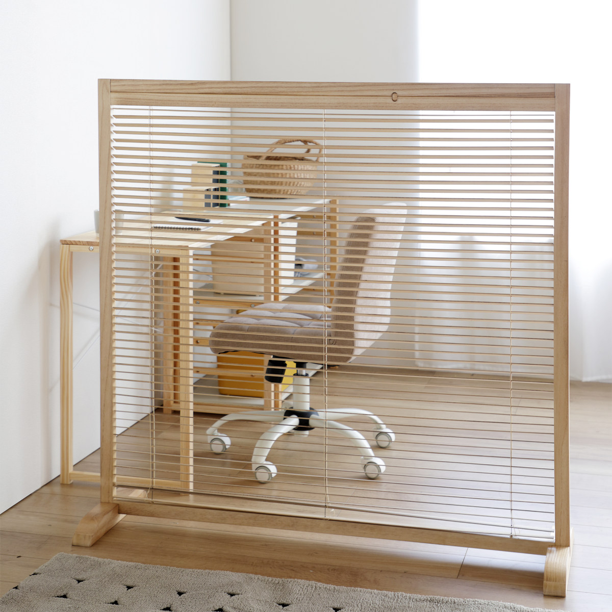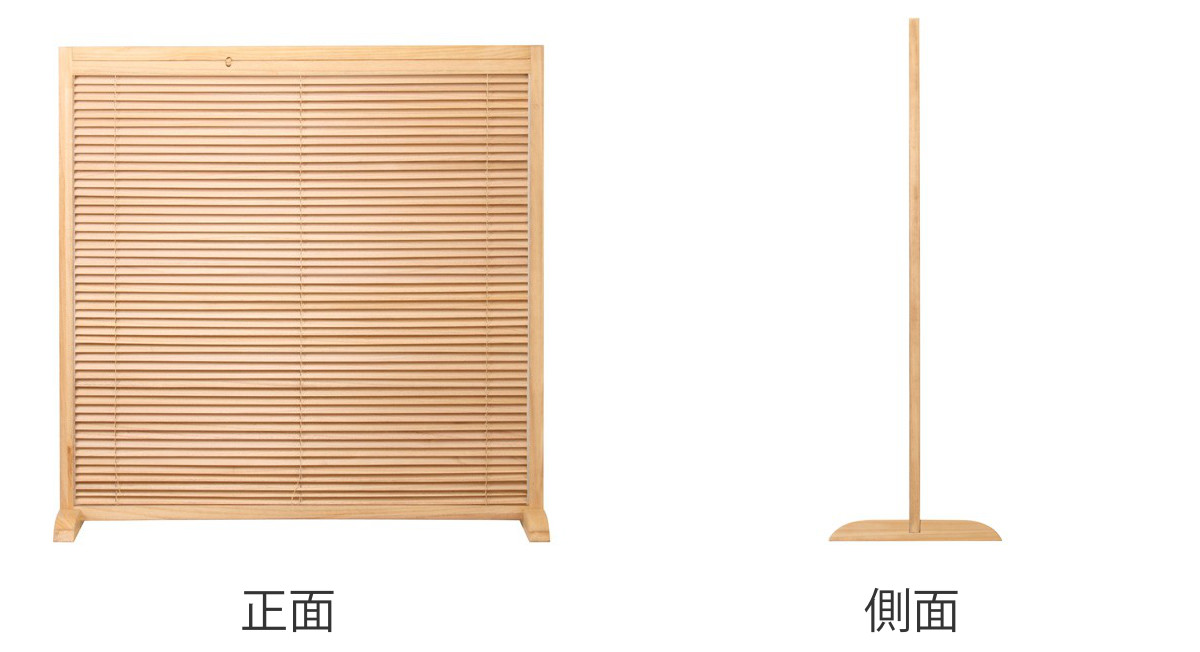 天然木のあたたかい風合いを活かした、高さ119cmの衝立です。間仕切りとしての機能性はもちろん、暮らしにやさしいアクセントを加えるデザインです。