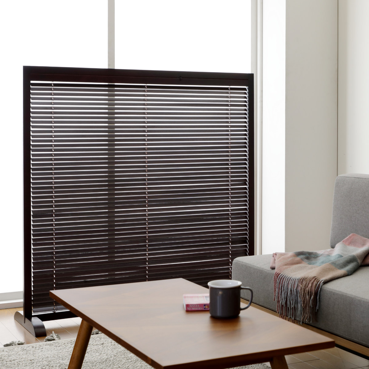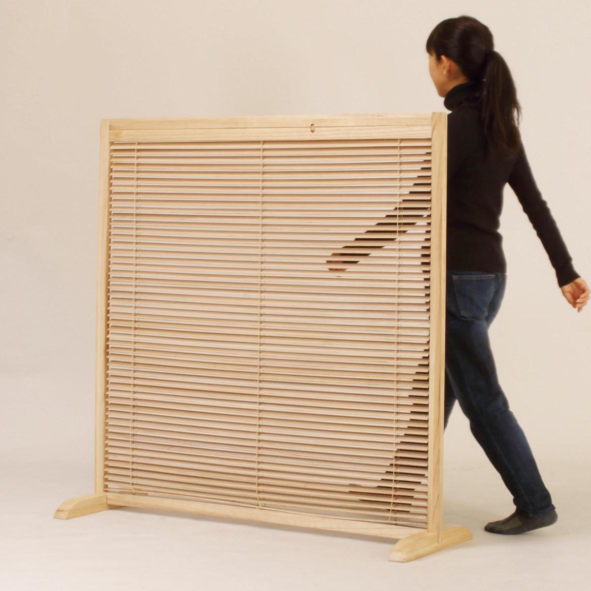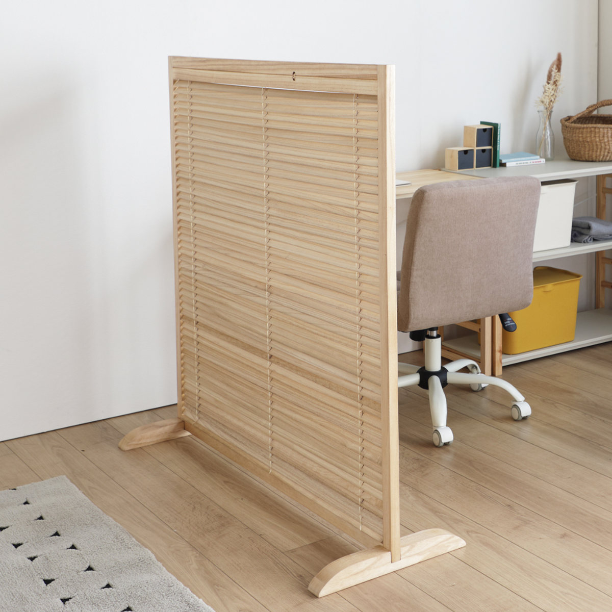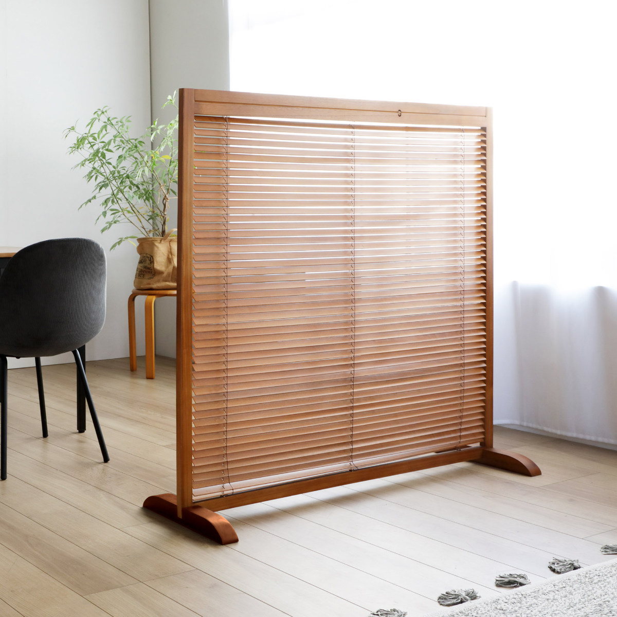 天然木のあたたかい風合いを活かした、高さ119cmの衝立です。間仕切りとしての機能性はもちろん、暮らしにやさしいアクセントを加えるデザインです。