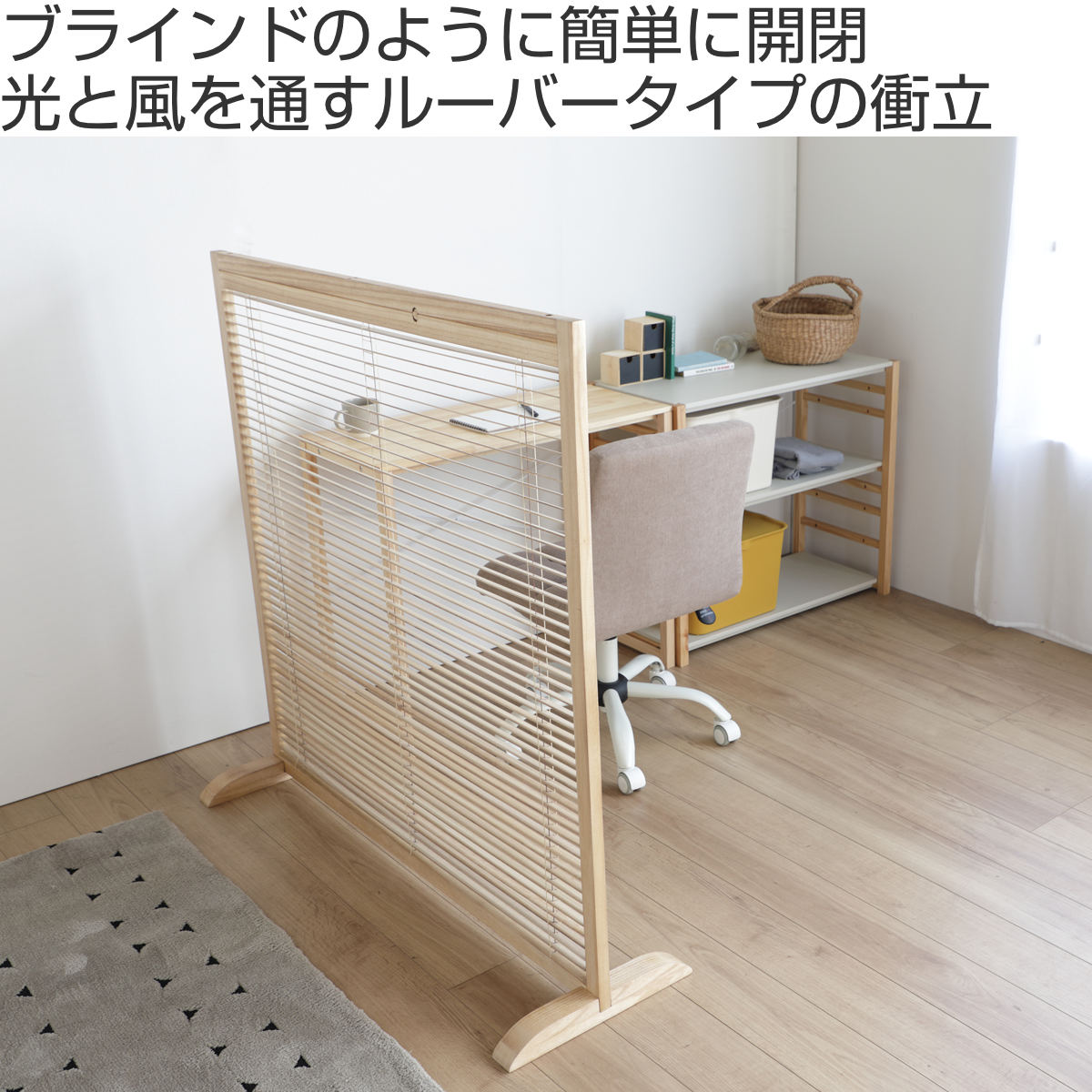 ブラインドのように簡単に開閉できるルーバータイプの衝立